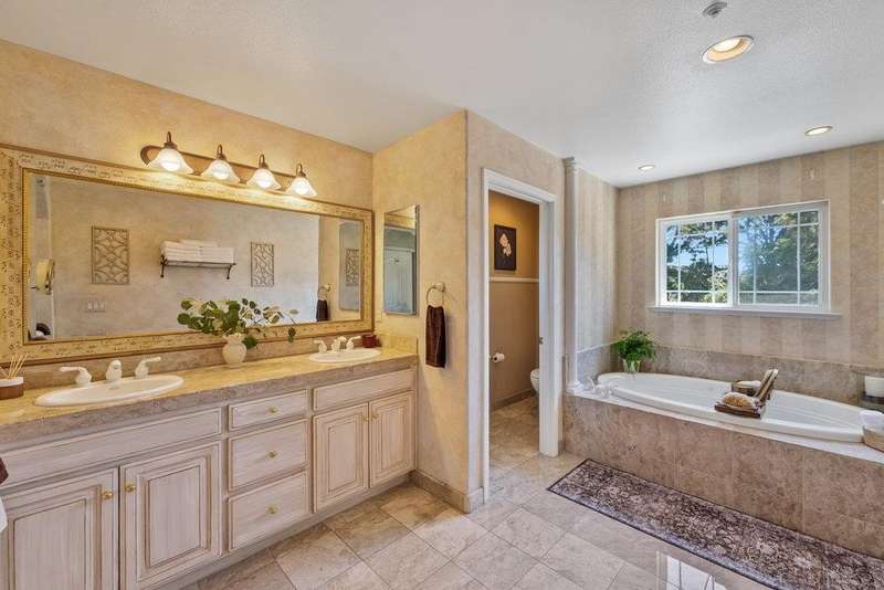 Original owner and never before on the market! True Pride of Ownership shines through in this quality construction 4 bedroom, 4 bath 3600+ sq ft home! Most of the living areas, large primary, & guest bedroom and bath on ground level! 12,000 sq ft private lot with lovely views & minutes walk to gorgeous sandy beaches, Seascape Resort /Golf Course, Tennis, shopping, restaurants, parks & more...you will love this location! Custom built home with lots of extra touches! A chef's kitchen, formal dining room, home theater with wet bar, projection TV with surround sound, large tiled decks, outdoor fireplace, & an amazing wine cellar! Step outside into English gardens with lovely stone walk ways, mature landscape, and all very sunny and private. 2 car garage all finished, with built-in cabinets, workbench, central vacuum, and loads of storage! Expansive living room that's full of light with vaulted ceilings, surround sound and rock fireplace. Large primary suite with walk in closet, complete with built in closet system, large soaking tub, & private tiled deck. Loads of built -ins throughout ,hardwood floors, porcelain tile floors in entry, kitchen,& dining room,4th Bedroom now used as office w built-in desk & shelves, & bath with steam shower. A rare find in ready to move in condition!