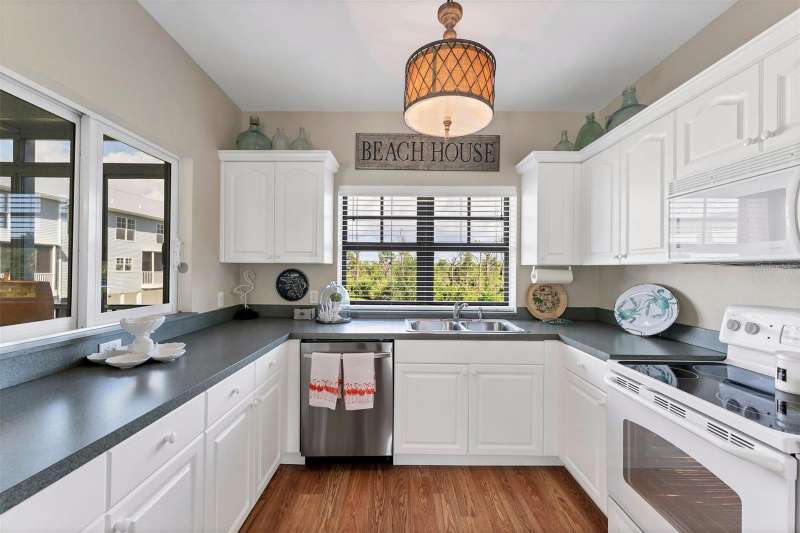 Stylish, Coastal, TURN-KEY FURNISHED, Tri-Level TOWNHOUSE with PRIVATE ELEVATOR & TWO-CAR GARAGE. Just one look and you’ll be sold! Step into this bright and cheerful, attractively updated condo, ready for IMMEDIATE MOVE-IN. Tastefully decorated with coastal charm, this spacious unit features laminate flooring throughout the main living areas for a seamless flow. Wainscotting and oak wood staircases add warmth and sophistication. Move effortlessly between levels with your own private elevator. Relax year-round on the enclosed lanai with both glass and screen enclosures—perfect for entertaining and enjoying peaceful views of the surrounding nature preserve no matter the season. Upstairs, the primary and guest bedrooms are both handsomely appointed with ensuite baths, while the third bedroom, equipped with bunk beds, offers great flexibility for guests, a home office, or a cozy retreat. This home has been completely redone from top to bottom, including a new roof, new siding, updated interior walls, and new flooring throughout—every detail has been thoughtfully addressed. Start your day with morning coffee or unwind with sunset views from your private balcony with views of the community pool. Located just minutes from the Gulf beaches for fishing, swimming, and boating—or hit the links at one of the many nearby golf courses. Whether you're seeking a full-time residence, a seasonal getaway, or a savvy investment, this stylish, low-maintenance condo offers exceptional value and a relaxed coastal lifestyle you’ll love coming home to.