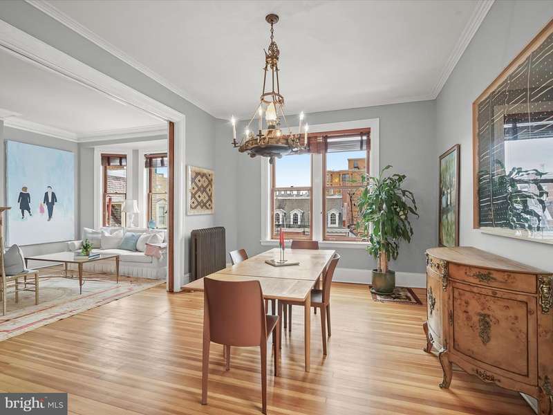 Discover the perfect blend of historic charm and modern luxury in this stunning, light-filled, quiet, spacious 3-bedroom, 2-bathroom residence at The Mendota, the District's first luxury apartment building. With over 10-foot ceilings, oversized windows, and large pocket doors that separate the spacious living and dining areas, this home exudes elegance and comfort. The fully renovated kitchen features a wet bar and an eat-in space. The versatile third bedroom offers the potential to be a home office. The living and dining rooms offer views of Wyoming Ave NW, providing a serene and vibrant living experience. The apartment has an in-unit washer/dryer.Ideally located just moments from Dupont Circle Metro, Rock Creek Park, renowned restaurants, shops, and embassies, this residence combines the best of city living and tranquility. Once home to Woodrow Wilson, The Mendota was featured in Goode's Best Addresses and remains a historic gem in the Kalorama Triangle. With architectural details like cathedral ceilings, oversized windows, original crown moldings, and Victorian-tiled fireplaces, this 7-story building offers some of the most generous floor plans in the city. Building amenities include a welcoming parlor, a private courtyard with benches, well-maintained landscaping, bicycle storage, and a 24/7 front desk for your convenience.Live in a piece of history while enjoying all the comforts of modern livingschedule your tour today!
