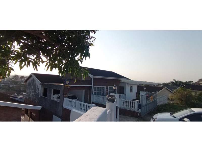 Here is a 5 bedroom double story house in a sort after area of Effingham Heights. The house has three granny flats attached to it, offering a two bedrooms each plus toilet and shower. The house has a single garage with a door leading to both entertainment area and to stairway going down to the main lounge dinning room open plan, at the far end is a door leading to the balcony giving a beautiful view of N2 road from back side of the house, adjacent is also an open plan nice fully fitted kitchen. This house has two lounges used as a TV room. This is a good house waist no time please call Fred. The house has an entertainment area which is accessed from the garage drive way and new additional kitchenette plus shower and toilet. This double story has a potential of +/- R12 000 income. I am just a cell phone away.