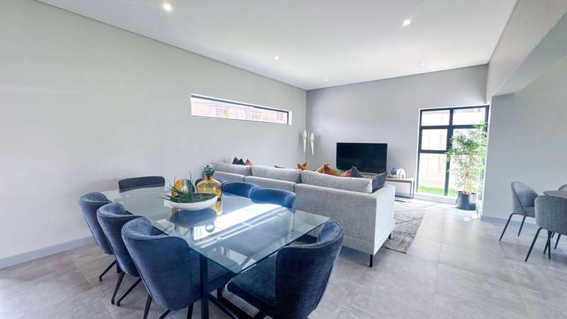 Welcome to a thoughtfully designed home that blends family-friendly functionality with easy entertaining. 3 Bedrooms 2.5 Bathroom Open-Plan Living area and Kitchen Private Scullery Covered Entertainment area with Built-in braai Double garage A Home Designed for Modern Living and Effortless Entertaining, this property ensures convenience from the moment you arrive. Step into a light-filled, open-plan living space. The lounge, dining room, and kitchen ideal for family gatherings or relaxed evenings at home. The main bedroom is a peaceful escape, featuring a full ensuite and ample walk-in cupboard space. Bedrooms 2 and 3 are located just down the hall and share a full bathroom. A built-in linen cupboard in the passage adds valuable extra storage. This home offers the perfect balance of style, space, and functionality — ideal for families seeking a comfortable lifestyle in a modern setting. Contact Danette Gerber today to schedule a viewing and make this property your own!