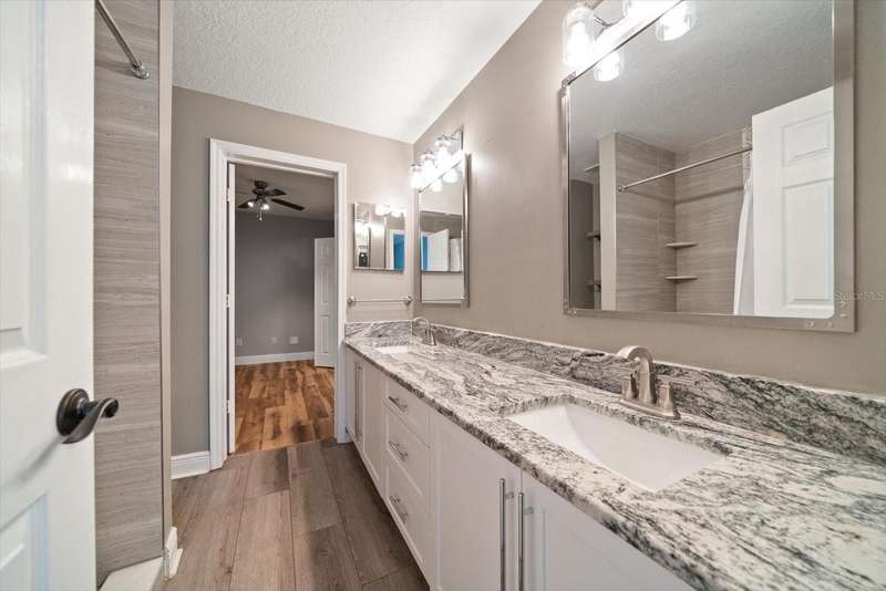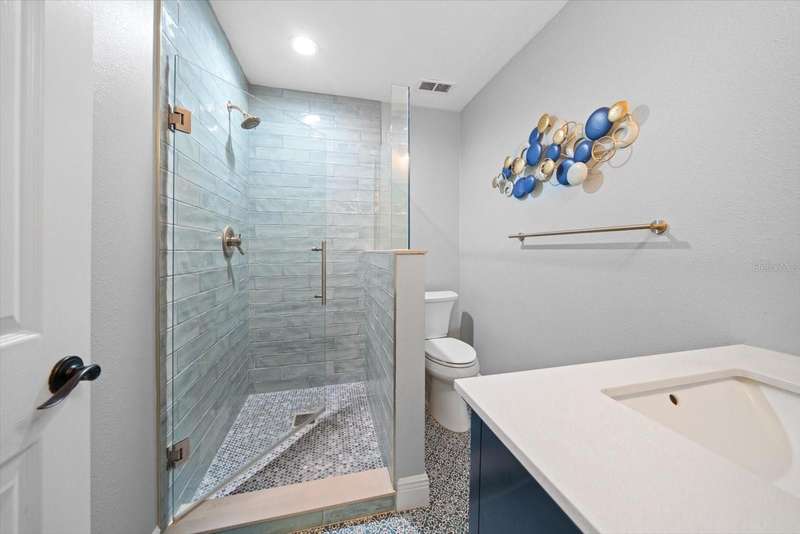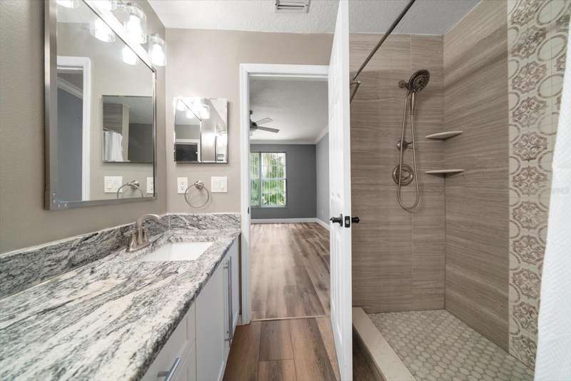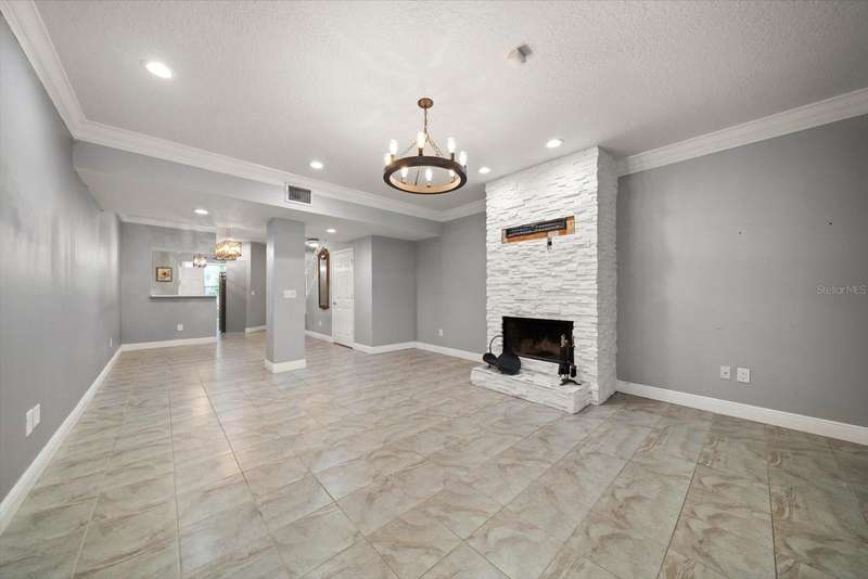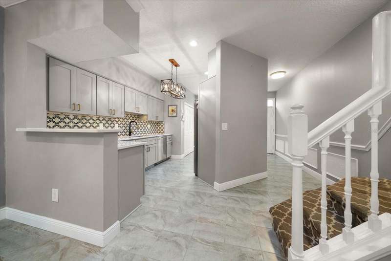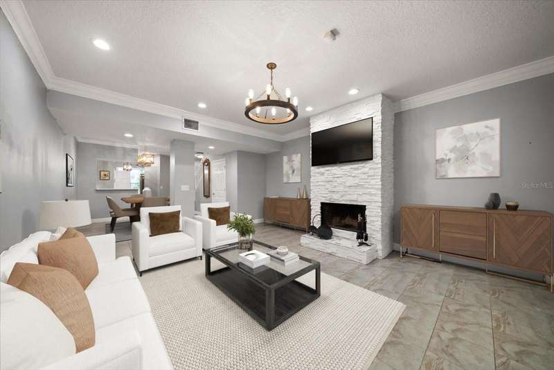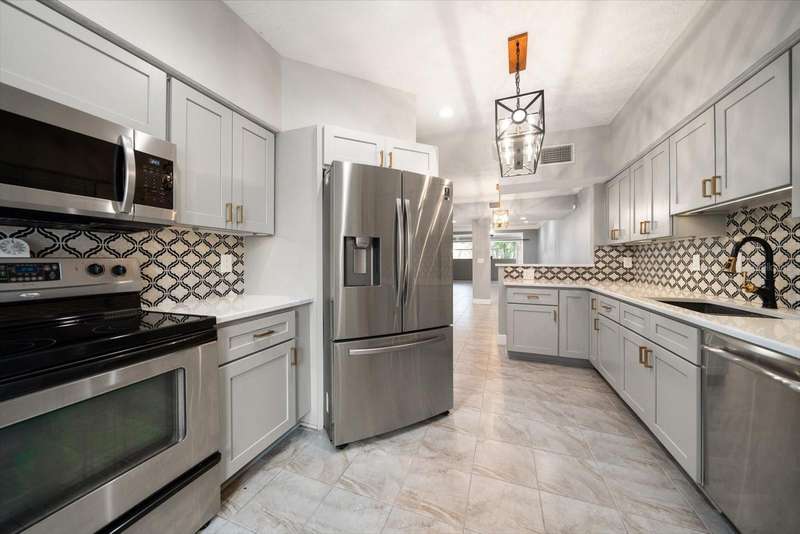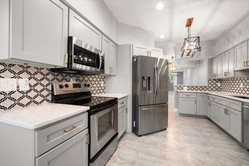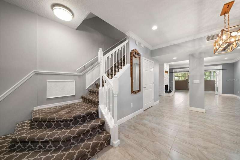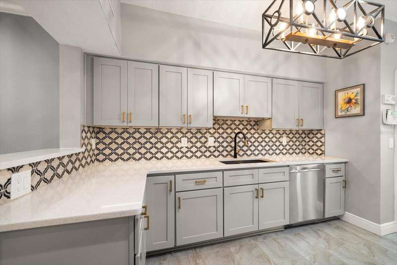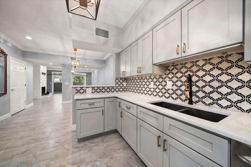 This home is a triple level stunner: • 4 Bedrooms, 3.5 Bathrooms across 2,400 sq ft • Modern kitchen with quartz countertops, gorgeous designer tiled backsplash, soft-close cabinetry, deep matte granite composite sink, brushed gold hardware & faucet. • Crown molding, recessed lighting with dimmers • Main level laundry; large front-loading washer & dryer. • Wood-burning fireplace with slate brick surround • Florida room with French doors and full tiling • Primary suite offers double closets with ensuite dual vanity bathroom & step in tiled shower. • Bonus room, just off Primary, offers versatile space for office, den or space to create a walk in closet! • Renovated bathrooms with granite-topped vanities and spa-inspired showers • This multi-level design is great for generational living or dual primary suites, each on their own level. • Detached 1 car garage with additional attic storage space • Prime location: Near Countryside Mall, Community Rec Center with park & library, Bowling Lanes, Golf Courses, Restaurants, shopping & a short drive to Clearwater Beach, Honeymoon Island, and downtown Dunedin. Steps away are the Countryside Country Club & Chi Chi Rodriguez driving range & golf club.