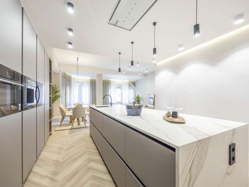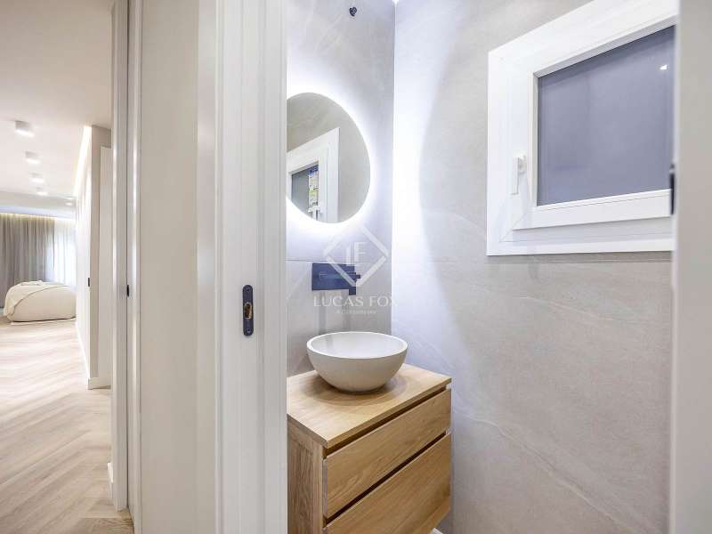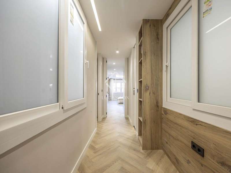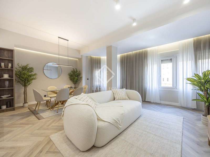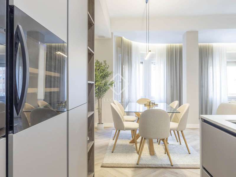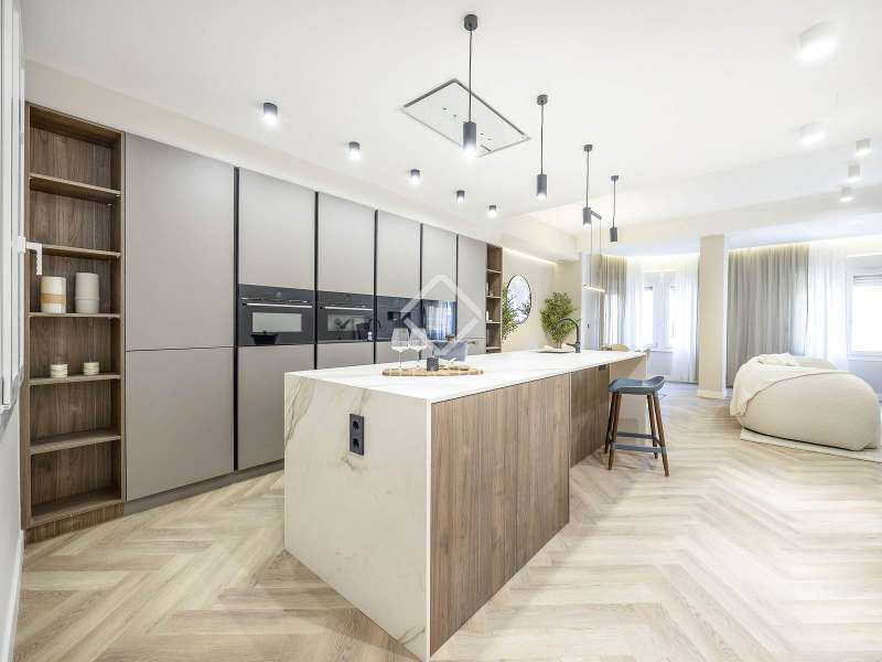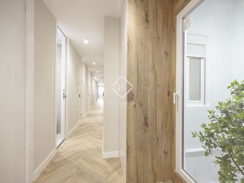 Lucas Fox presents an excellent 5-bedroom property in the centre of Valencia, a few meters from Calle Colón and Gran Vía Marqués del Turia. Very close to the Estación del Nord, the most important train station in Valencia and two minutes from the Plaza del Ayuntamiento. It has just been completely renovated and is therefore brand new, with all new facilities and the latest current decorating trends. Perfectly laid out, separating the day area and night area areas, it features high ceilings and cross ventilation. Excellent insulation is provided by its new Cortizo PVC windows. Designer kitchen with a large central island and invisible Cooking Surface induction system, integrated Bosch appliances and Grohe fixtures reflect the care and attention that went into the renovation. Home automation (Simon mechanisms, remote control of blinds and lights), air conditioning with 3 machines and separate areas , appliances included including coffee maker and wine cooler. Next to the building we have the option of renting one or two parking spaces to have this service. Possibility of including the furniture in the purchase of the property.