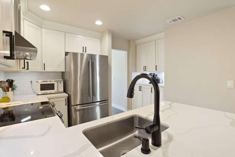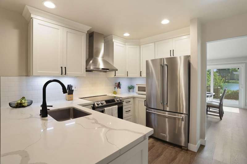 Beautiful LAKEFRONT condo in quiet Quail Lakes neighborhood! Meticulously upgraded and maintained, this home is completely MOVE IN ready! Two-story Townhouse, 2 bedrooms, 2.5 baths, attached 2 car garage. Gated courtyard, beautiful glass front door, rear patio overlooking Quail Lake, double-height entry foyer w/ Restoration Hardware chandelier, vaulted ceilings in living areas and custom plantation shutters! Stunning kitchen complete with quartz countertops, custom backsplash, chefs range hood & newer appliances! Updated bathrooms throughout, quartz countertops, custom backsplash, lighting, plumbing fixtures, Toto toilets and more. Luxury Vinyl Plank wood flooring downstairs, smooth finish on walls, newer HVAC, water heater, NEST thermostat and sliding glass doors! Imagine yourself overlooking the lake from your one-of-a-kind turn key oasis! Don't miss this one!