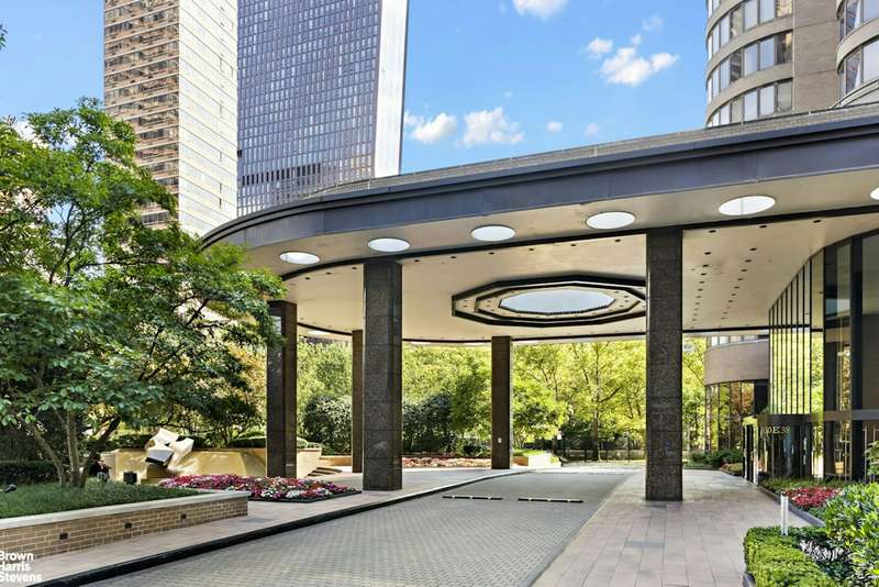 An icon of New York architecture, The Corinthian is known for its curved facade, private drive-through entry, and lush -acre landscaped plaza with reflecting pool and canopied entrance. The double-height marble lobby is adorned with curated artwork and seasonal floral arrangements.