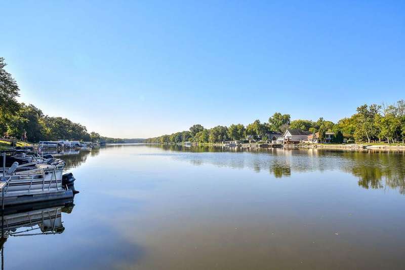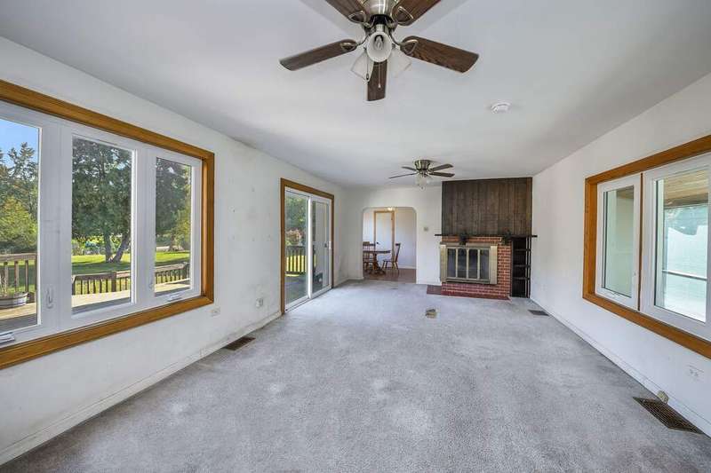 Welcome to this sprawling ranch in Fox River Estates, ideally located just a few doors down from the community clubhouse and private dock along the beautiful Fox River. Situated on a private .65 acre lot in the highly acclaimed 303 St. Charles School District, this home offers 1,353 square feet of above-ground space, featuring three generously sized bedrooms and a full bathroom on the main level. Inside, you'll find a newly updated kitchen, a spacious living room, and a dining room anchored by a cozy fireplace, as well as hardwood floors hidden beneath the carpet in the living room and hallway, which appear to be in excellent condition. The finished basement adds an impressive 1,500 square feet of additional living space, including a large recreation area and a convenient half bath, perfect for entertaining, hobbies, or extra room to spread out. Step outside to enjoy a screened-in front porch, a large back deck, and a huge fenced backyard ideal for gatherings or relaxing. Practical updates add peace of mind, including a newer roof, appliances, and HVAC system. The property also features a very deep, heated two-car garage. And with fully paid-off solar panels, you'll enjoy virtually no electric bill at all. This home combines comfort, community, and convenience-don't miss the chance to make it yours!