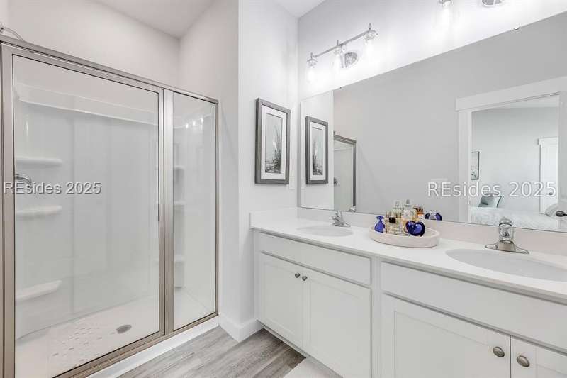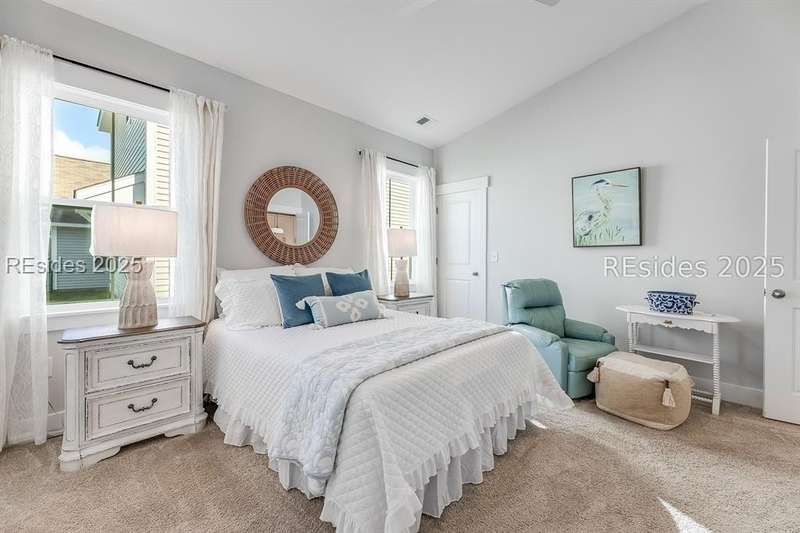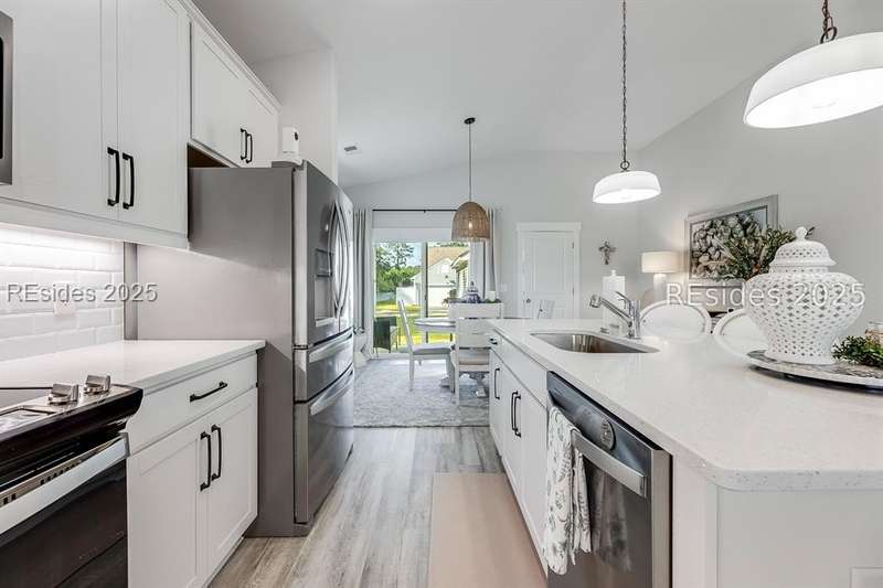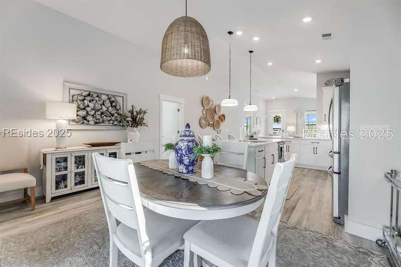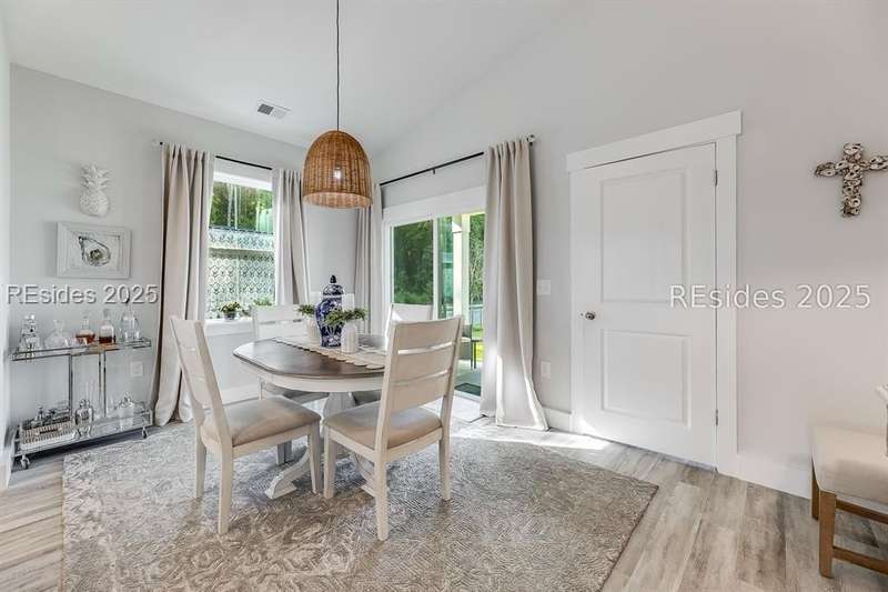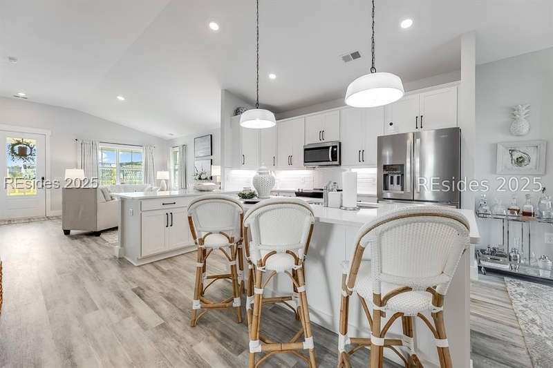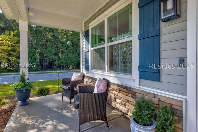 Cottage style, single story home exudes Lowcountry charm! Situated on a corner homesite in the boutique River Oaks neighborhood, this bright, airy home is filled with natural light and designer upgrades. Inside, you'll find craftsman baseboards and window sills, cottage-style trim, beadboard accents, wainscoting, and statement lighting throughout. The kitchen is a focal point, exuding luxury with quartz countertops, 42" cabinets, under-cabinet lighting, custom backsplash, and premium hardware. Wake up to serene sunrise views over the lagoon from your front porch, then stroll the neighborhood's sidewalks winding past peaceful lagoons and majestic Live Oaks. River Oaks sits quietly at the end of a street that meets the scenic Okatie River, offering Beaufort County living with access to Bluffton Schools. Here, small neighborhood charm meets the best of Lowcountry convenience.