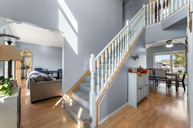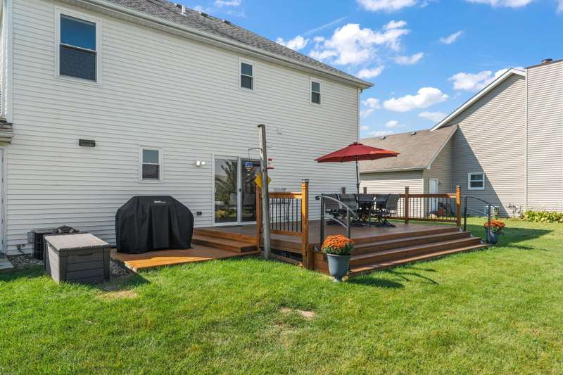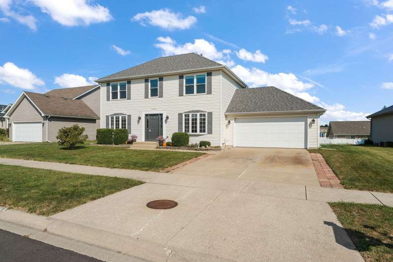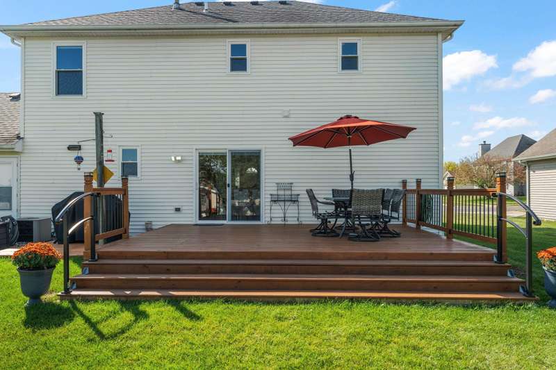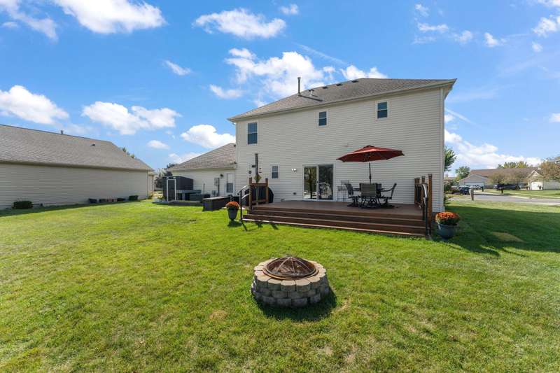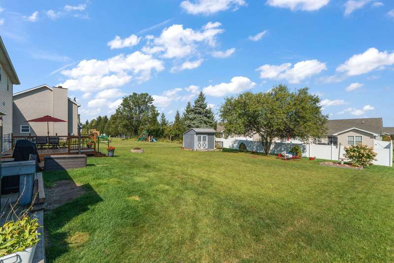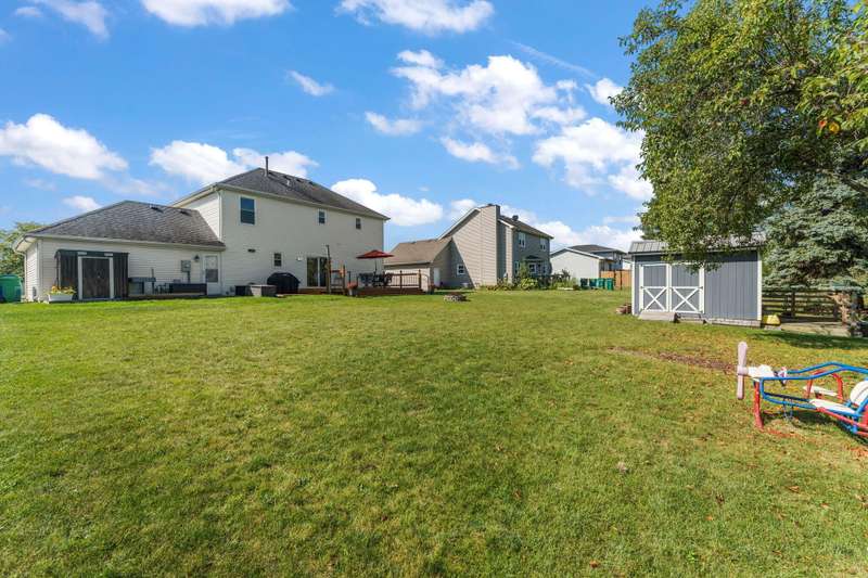 There is still time to "Fall" into this spacious yet quaint 3-bedroom 3-bathroom Colonial before the holidays. The main floor has a vaulted ceiling entry giving light to the beautiful staircase that can showcase holiday decor or boundless photo ops. The front door and most of the windows are newer. The office has new vinyl plank flooring. The huge living room area is great for hanging out or entertaining. A half bath is located off the hallway. The kitchen has stainless appliances, touchless range hood, and a pantry for added storage. In the dining area you'll find sliding doors with built-in roman blinds installed in 2021 leading outside to a spacious deck that has adjustable solar lighting, providing a place for relaxing or entertaining overlooking your large backyard. The backyard is perfect for playing, entertaining, and gardening. Two sheds for backyard storage of tools or toys. Upstairs you'll find a full bathroom for two of the bedrooms to share. The Main Bedroom's bath has 2 large closets, 1 with laundry hookups. The two-car garage is gas heated with attic storage. Basement currently has laundry area and utility sink and is an open slate for future finishes. It is conveniently located close to highways, hospitals, shopping, and dining.