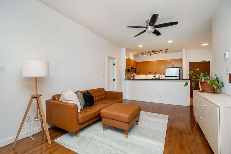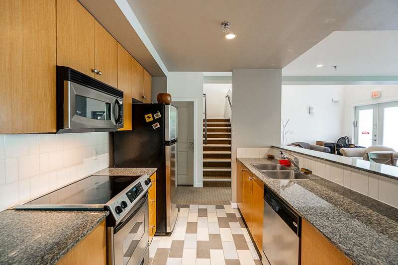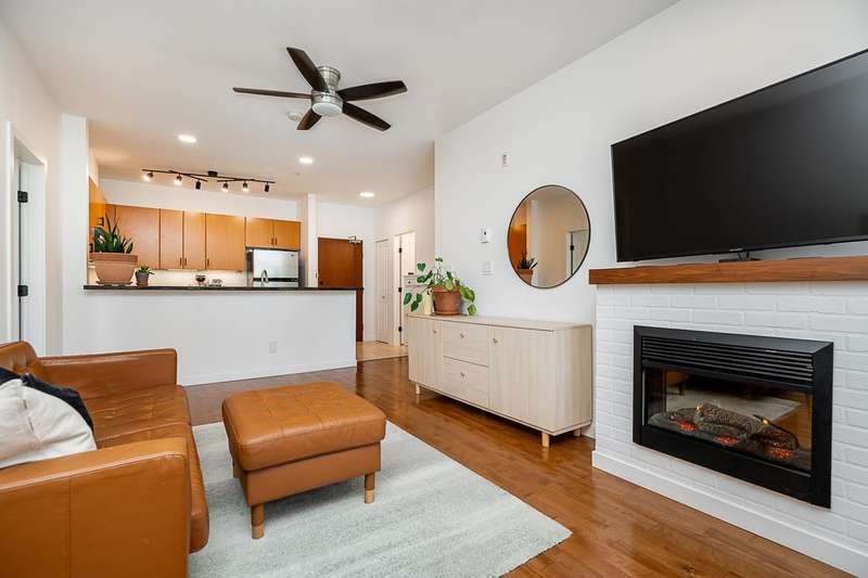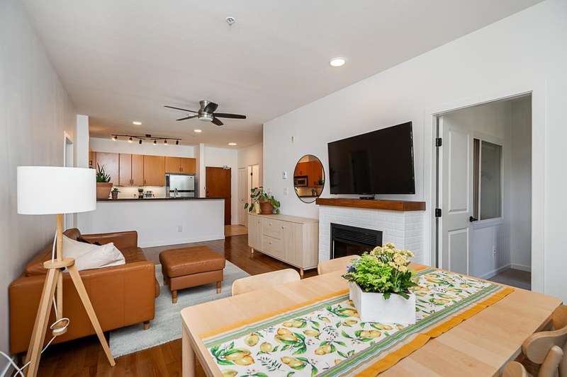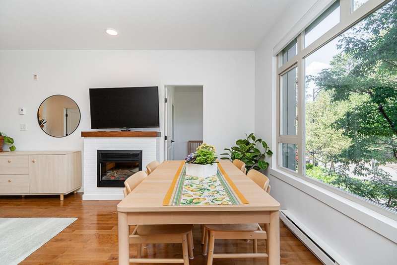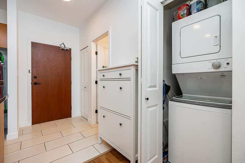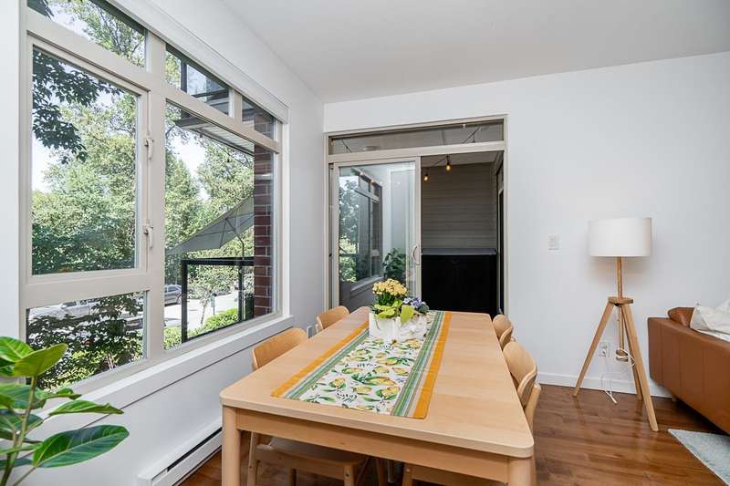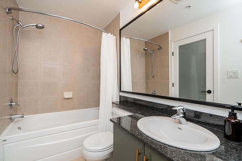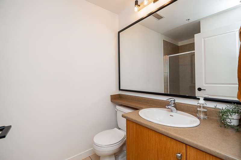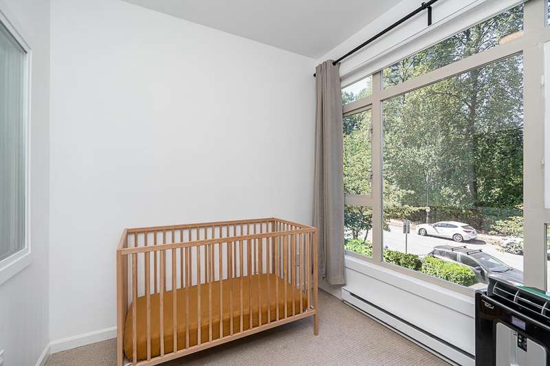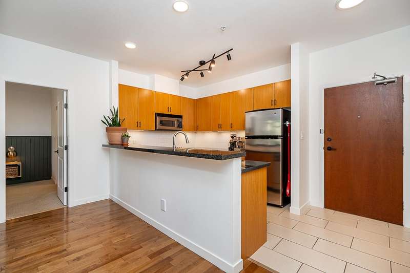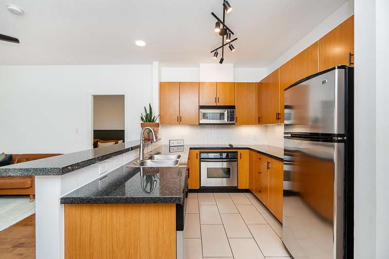 "Suter Brook" in the heart of central Port Moody is the perfect blend of nature & modern living. Surrounded by forest greenbelts & nature trails, this 2-bdrm + den apt offers flex space for an office or hobby room. Oversized windows & 9-foot ceilings provide abundant natural light. The 120 sq ft covered balcony offers year-round outdoor living. Owner's pride shines throughout this immaculate apartment, featuring granite countertops & S/S appliances. The primary bdrm has a feature wall & a walk-through closet. Cozy fireplace with a faux brick finish & mantle highlight the spacious Lvgrm. Recent painted walls, ceilings, updated blinds & lighting make this apartment move-in ready. Tandem parking for two vehicles & additional secure bike rack with a separate storage locker.