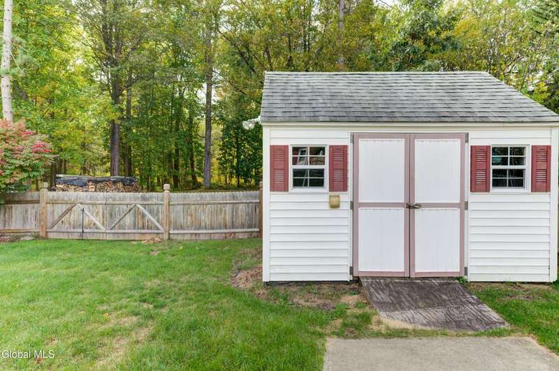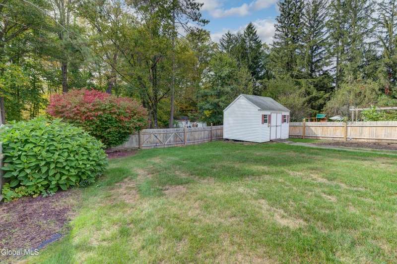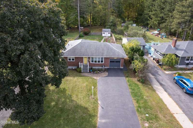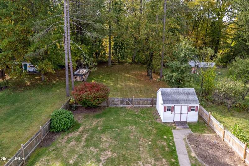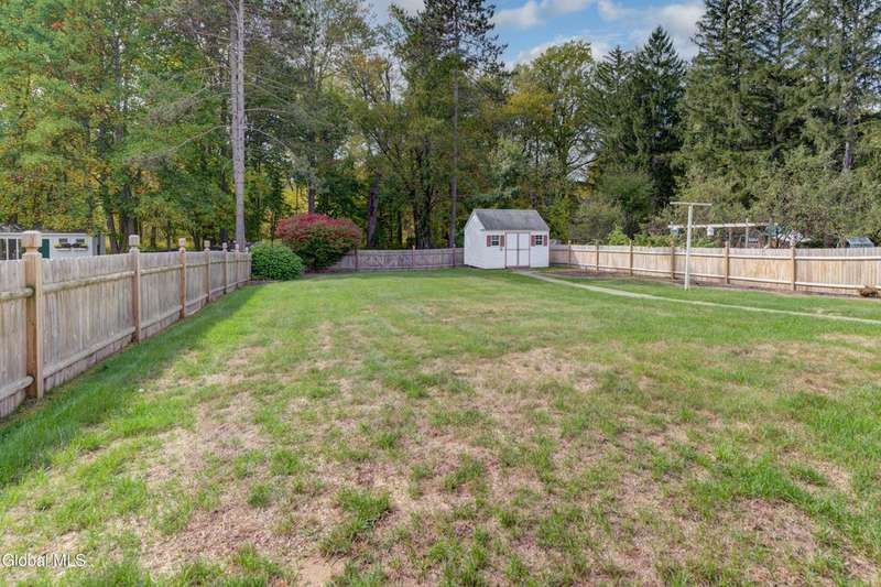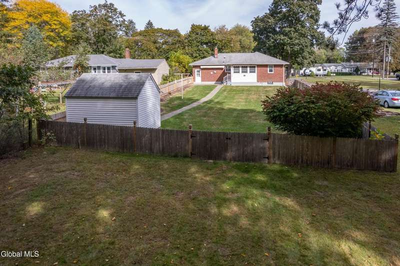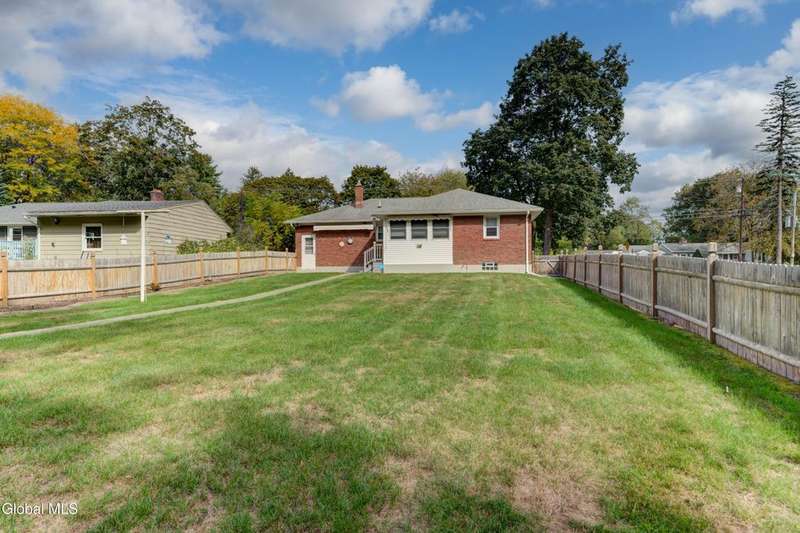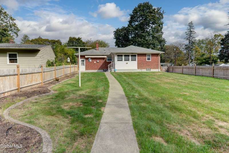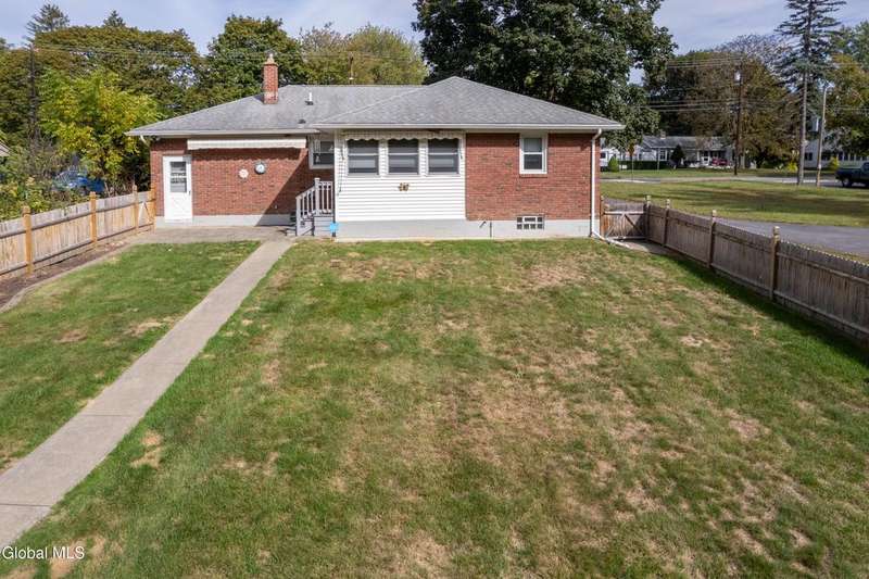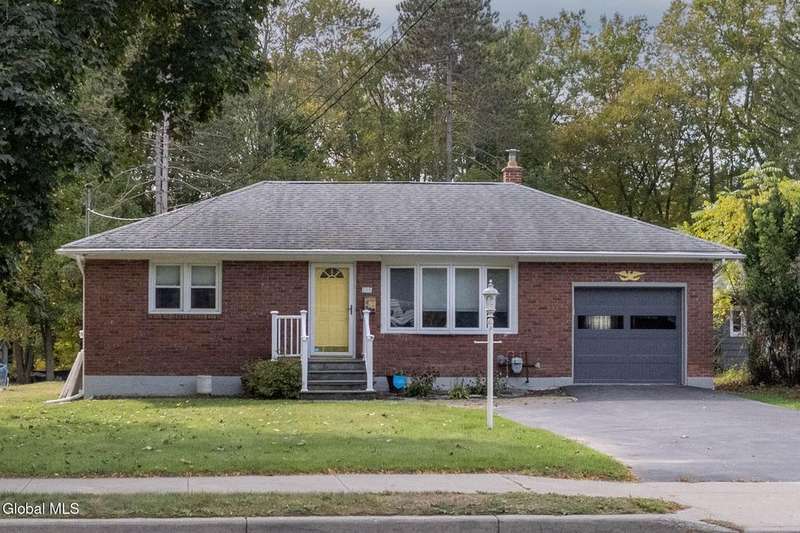 Welcome to this beautifully maintained and charming 2 bedroom, 1.5 bath brick ranch in this prime Delmar Location.Situated on over a half-acre lot abutting the Swift Wetland. This well-cared-for home offers numerous updates and a fantastic layout. Inside, you'll find a spacious living room with a bow window, hardwood floors (under carpet), and a coat closet. The updated kitchen features hardwood floors, a tiled backsplash, is fully applianced, and opens to the cozy den?highlighted by exposed brick, natural light and direct access to the rear patio. Both bedrooms are generously sized with hardwood flooring, and one includes a cedar closet. The full bath is finished with tile floors and walls. An updated half bath with laundry is conveniently located off the kitchen and garage entry. Additional highlights include: Attached 1-car garage with pull-down attic storage and stair access to the full basement with a gas hot water boiler, gas hot water tank, utility sink & central air The fenced portion of backyard is perfect for pets, with a newer shed; property extends beyond the fence to the woods. Enjoy peace and privacy while being just minutes from Delaware Avenue, Route 85, shops, restaurants, schools, and the town pool/park. This move-in ready Delmar gem combines character, updates, and a prime location?don't miss it!