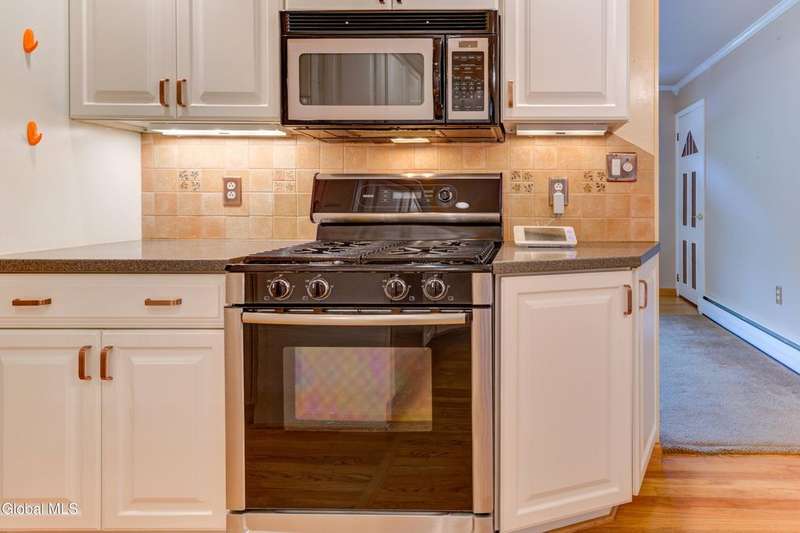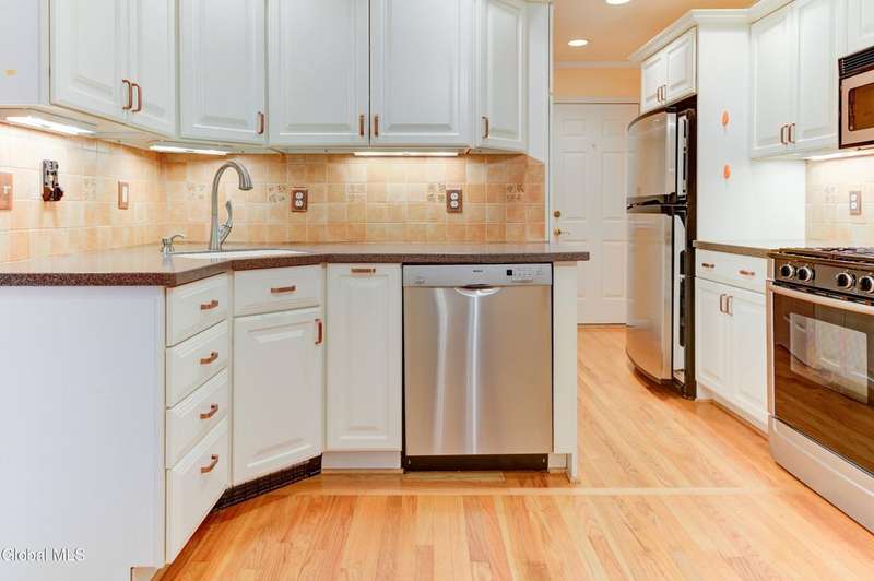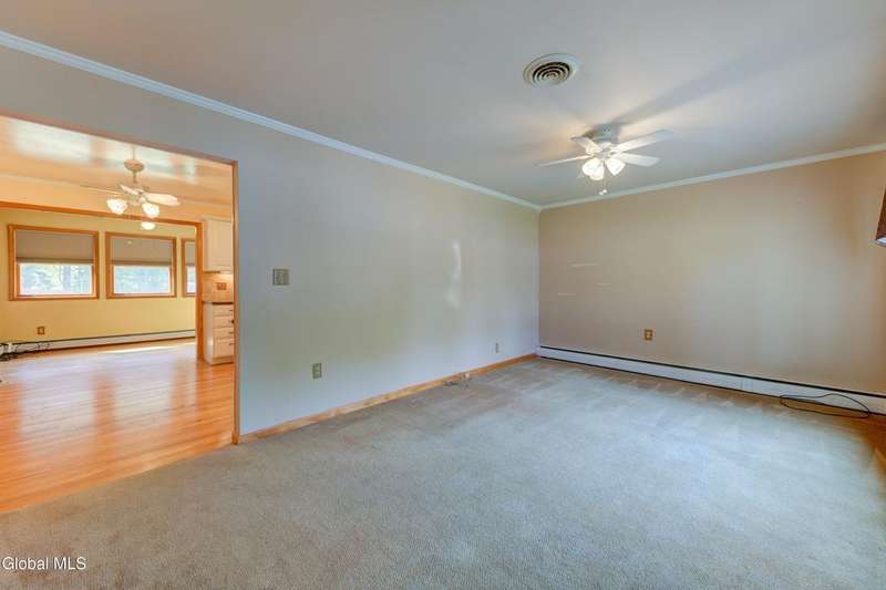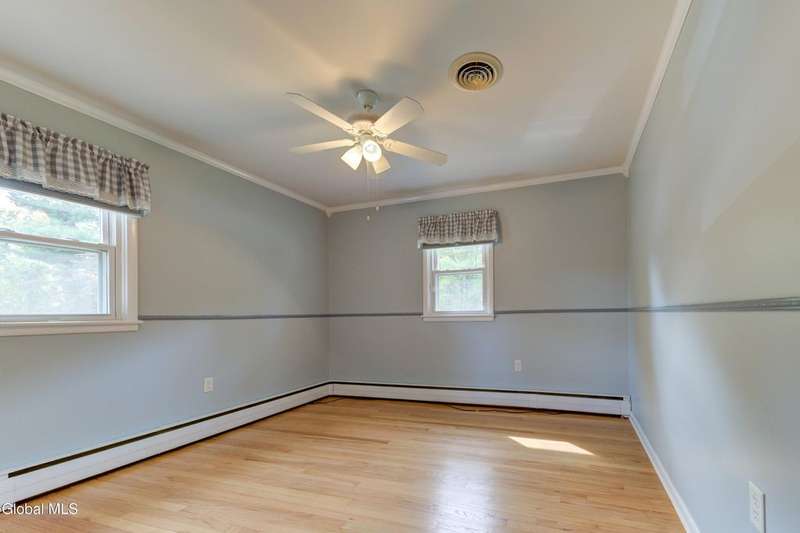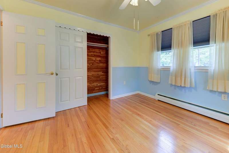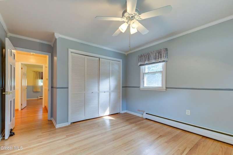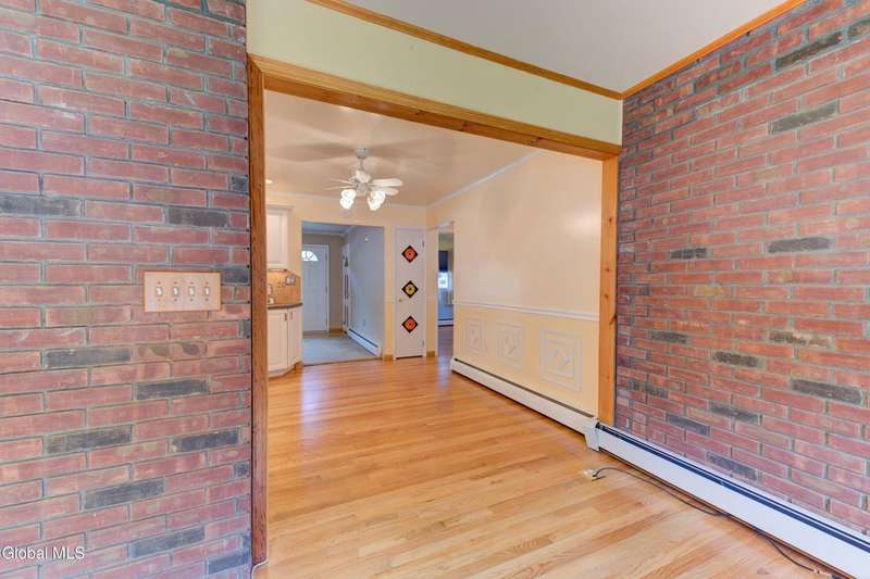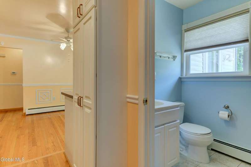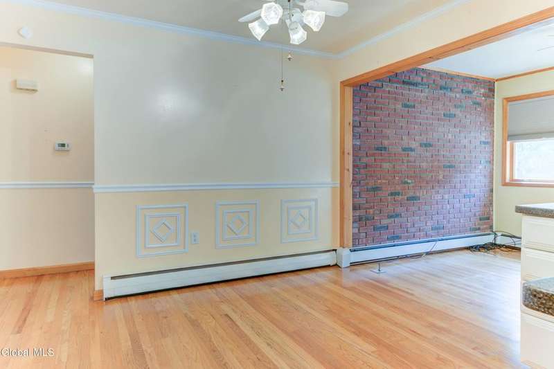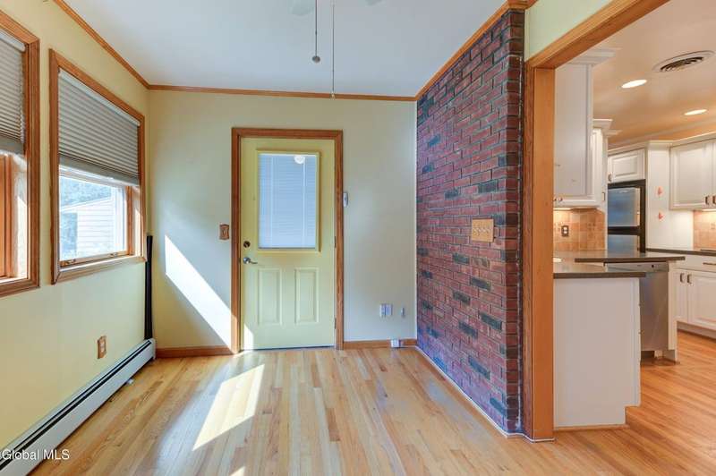 Welcome to this beautifully maintained and charming 2 bedroom, 1.5 bath brick ranch in this prime Delmar Location.Situated on over a half-acre lot abutting the Swift Wetland. This well-cared-for home offers numerous updates and a fantastic layout. Inside, you'll find a spacious living room with a bow window, hardwood floors (under carpet), and a coat closet. The updated kitchen features hardwood floors, a tiled backsplash, is fully applianced, and opens to the cozy den?highlighted by exposed brick, natural light and direct access to the rear patio. Both bedrooms are generously sized with hardwood flooring, and one includes a cedar closet. The full bath is finished with tile floors and walls. An updated half bath with laundry is conveniently located off the kitchen and garage entry. Additional highlights include: Attached 1-car garage with pull-down attic storage and stair access to the full basement with a gas hot water boiler, gas hot water tank, utility sink & central air The fenced portion of backyard is perfect for pets, with a newer shed; property extends beyond the fence to the woods. Enjoy peace and privacy while being just minutes from Delaware Avenue, Route 85, shops, restaurants, schools, and the town pool/park. This move-in ready Delmar gem combines character, updates, and a prime location?don't miss it!