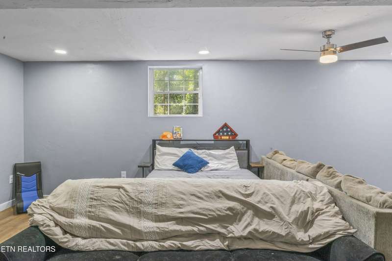 This is a traditional 4-bedroom, 2-bathroom basement ranch home on a wooded lot. Basement has been refinished into 4th bedroom along with extra storage that can be converted into man cave, exercise room, or game room downstairs. Fresh paint throughout the house. Deck off of sliding glass doors in kitchen with a fenced in area for dog. Tree house and swing stays with house in backyard. Peaceful neighborhood with a welcoming community feel. This beautiful property combines comfort, style and convenience-perfect for families or anyone seeking a peaceful retreat. Just mins from Knoxville, Alcoa, or Maryville. There is a cat inside house please do not let cat out. Also, backyard has two dogs in fenced in area. Deck and outside of house has been pressure washed. New paint on shutters on house. Sellers are motivated and under contract on another home. Sellers need to close with Realty Title- Teresa
