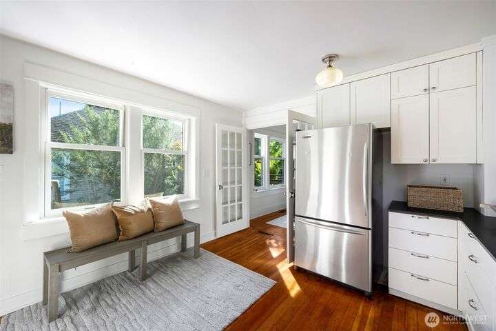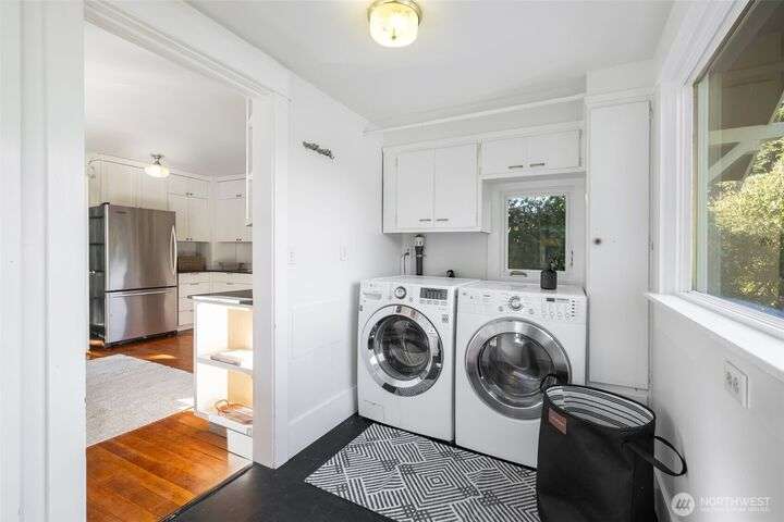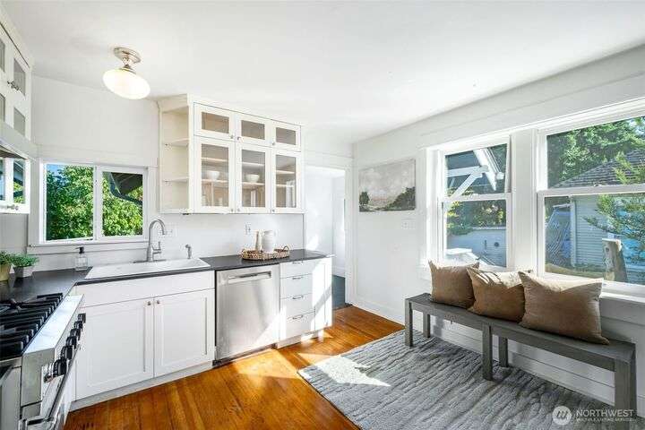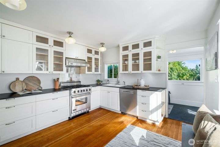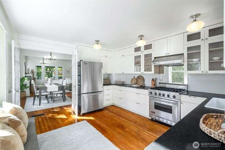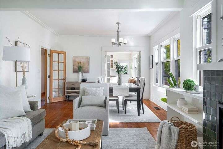 Classic elegance meets modern comfort on a tree-lined street in Loyal Heights. Built in 1915, this romantic Craftsman features freshly refinished fir floors, four upper-level bedrooms, and inviting living spaces. A separate-entry 1-bedroom basement apartment offers flexibility for guests, an extended household, or rental income. Enjoy a fully fenced private backyard, detached garage, and rare two off-street parking spaces—all steps from schools, Larson’s Bakery, and Loyal Heights Park.