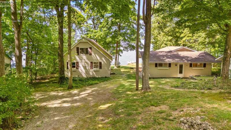 Tucked away on one of the island's most private and little-known streets, this rare lakefront property offers breathtaking sunset views over Lake Erie, with direct sightlines to Green Island, a protected bird sanctuary.The property includes two cottages on two separate parcels...one cottage with 2 bedrooms and 1 bath, the other with 3 bedrooms and 1 bath both built in the 1950s-60s. While these structures are in older condition and have not been recently occupied, they offer renovation potential or the perfect footprint for new construction. Enjoy unobstructed views of Lake Erie and daily sunsets that never disappoint. Private lake access via set of steps leads directly from the property to a secluded beach ideal for swimming, sunbathing, or launching kayaks, paddleboards and other watercraft. This property is located in a peaceful, low-traffic area, offering total privacy. Minutes from the Miller Ferry, downtown Put-in-Bay, and a public boat ramp. Easy access to the nearby airport enhances its appeal for out-of-town guests or corporate use. Whether you're dreaming of a family retreat, an investment or a modern lakeside estate, this property offers endless possibilities. Opportunities like this rarely come up in this part of the island. Don't miss your chance to own a slice of island paradise with limitless potential and unmatched views.