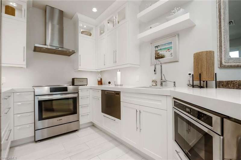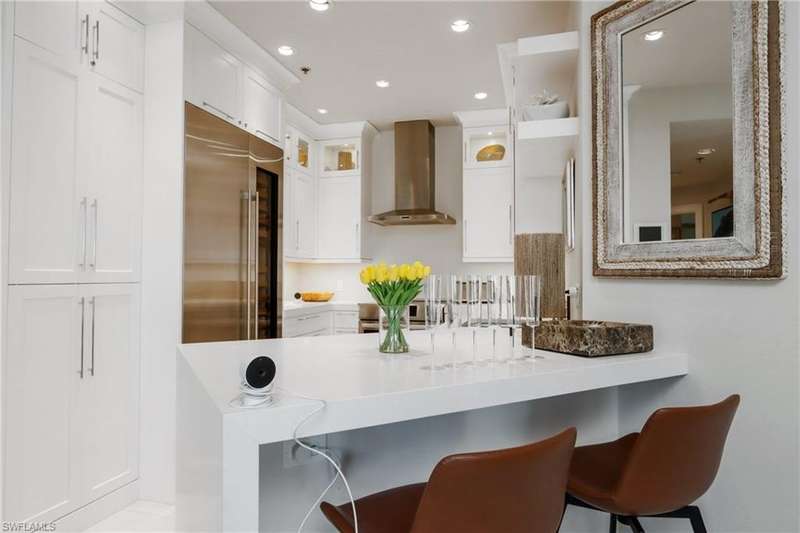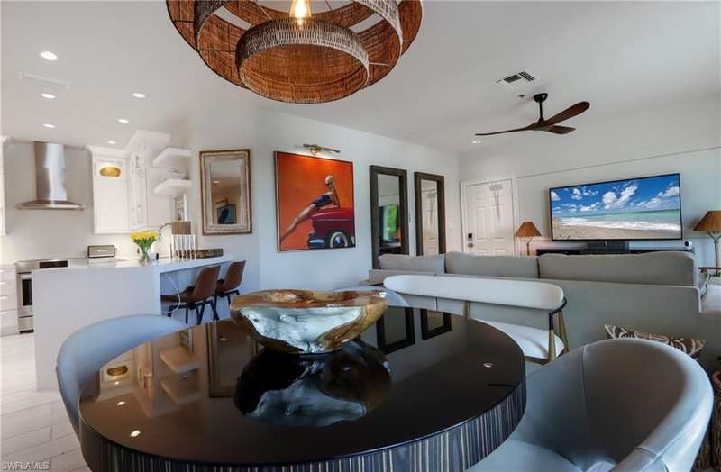Newly available for the 2025–2026 season! This exceptional two bedroom two bathroom penthouse is one of only seven exclusive residences, located at 365 Fifth Avenue South. A wonderful location to enjoy urban living in downtown Naples. Offering PGT impact-rated windows, porcelain tile flooring, custom closet systems, and Porcelanosa, vanities and trim, this condominium is one of style and refinement. The living room offers a comfortable, white upholstered couch, side chair, and entertainment center with a large TV. The kitchen has beautiful, white cabinetry, quartz counters and bar area, and is equipped with a subzero refrigerator, Bosch induction range and microwave, a wine cooler, and 2 bar stools. The dining area offers a round dining table for four. A perfect space for entertaining. The primary suite offers an upholstered bedframe with a king size bed, side tables, dresser, desk area, walk-in closet, and a private bath with a walk-in shower. The guest bedroom offers and a poster bedframe with a queen size bed, end tables, dresser, and bath with a walk-in shower. Enjoy the outdoor space with two comfortable chairs, as well as a dining table (w/umbrella), for four. The perfect location, just blocks from the white sandy beaches, this residence is located in a quiet area of 5th Ave.S., and yet walking distance to exceptional restaurants, luxury shopping, Naples Player’s Theatre, the Von Liebig Art center, Norris Tennis Center, and the outdoor Atrium featuring a variety of music events. An easy walk or drive to the Third Street restaurants and shops. Enjoy having two assigned parking spaces. This is a rare opportunity in Olde Naples. Priced under value to have a quality seasonal guest for 90 days or longer.