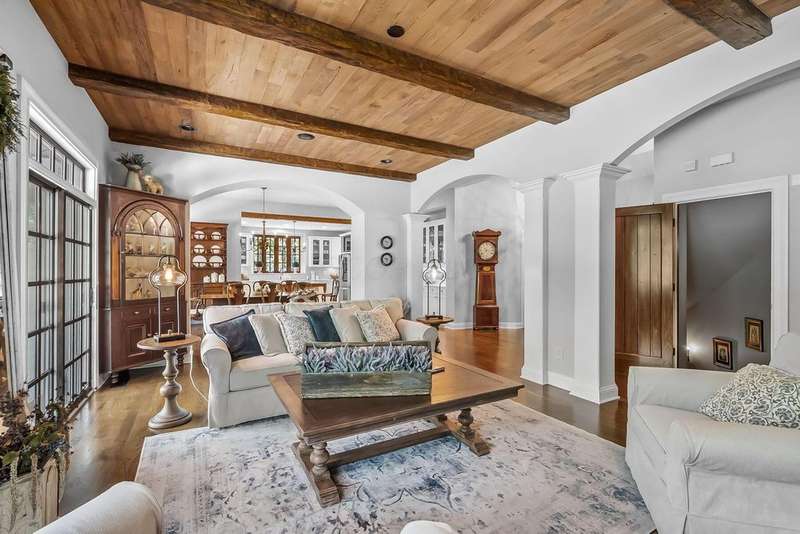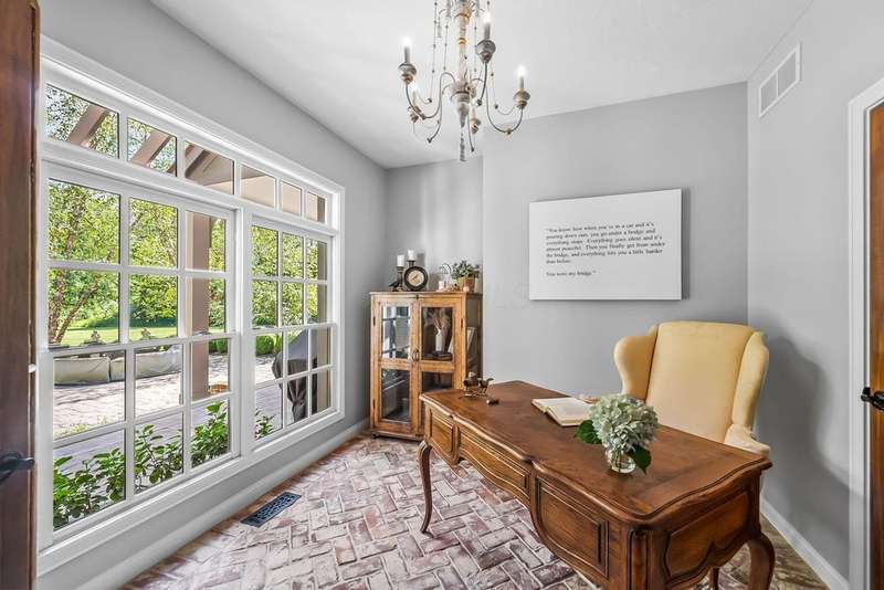 Open House Sun 9/28 from 2-4 P.M. Nestled along the tranquil banks of the Olentangy River, this one-of-a-kind 2.5-acre estate blends timeless French Country charm with refined luxury. From the moment you arrive, the craftsmanship and attention to detail are unmistakable?arched doorways, exposed beams, rich hardwood floors, and windows that frame breathtaking river views.The open-concept living space is designed for both comfort and sophistication. The family room features a beamed ceiling, stone fireplace and double glass doors that lead to a lush, private backyard oasis. The first-floor owner's suite is a sanctuary unto itself, complete with a private study, patio access, a spacious walk-in closet, and a spa-inspired bath adorned with bright white finishes and granite accents.Downstairs, the lower level transforms into an entertainer's dream with pub-like setting, custom bar, private wine cellar, media room, and versatile spaces for fitness, play, and relaxation. A fifth bedroom with a full bath offers privacy and comfort for guests. Upstairs includes three spacious bedrooms, loft, and J & J bathrooms!Outdoor living is equally exquisite, with a screened porch featuring daybed swings, a covered patio, a lower terrace, and a secluded riverfront firepit?all surrounded by lush, professionally landscaped grounds.This extraordinary property offers a rare blend of storybook charm and modern elegance?an idyllic haven for those seeking serenity, sophistication, and a connection to nature.