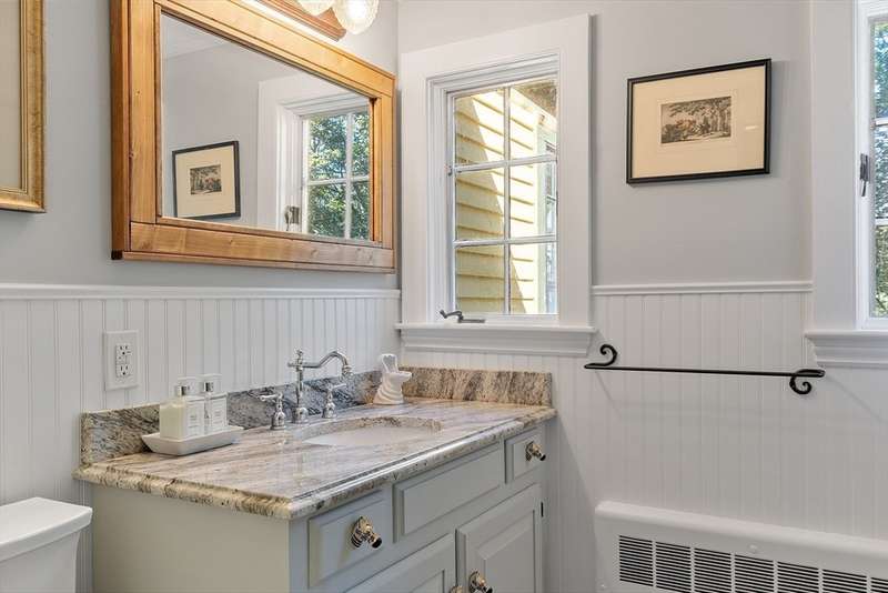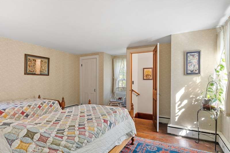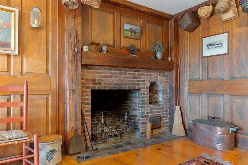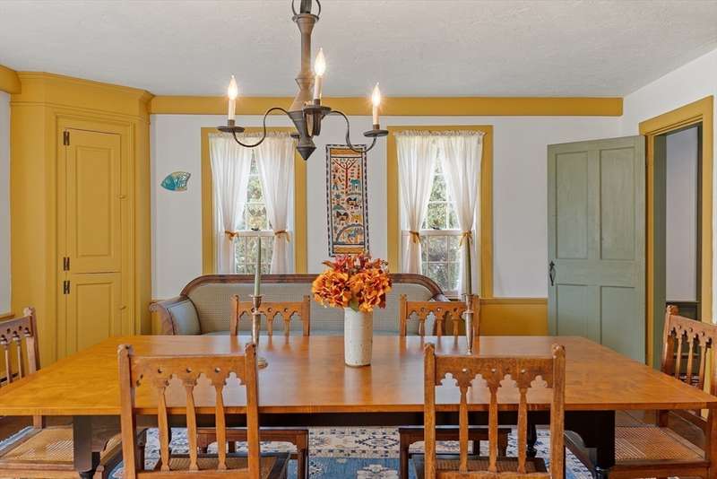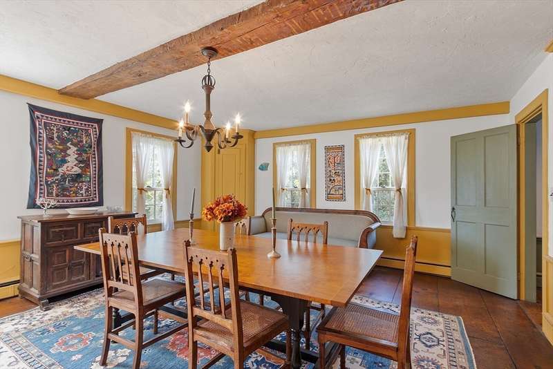 Beautifully restored colonial home with scenic gardens and water views of the Merrimac River on a 2-acre lot. The first floor has a great layout with well-proportioned rooms and abundant natural light. Enjoy a cozy living room with beamed ceilings and a large functioning fireplace. Host family dinners for up to 14 persons in the exquisite dining room with custom built-ins and beamed ceilings. Prepare meals and breakfast in the large kitchen with its own fireplace and large eat-in area with river and scenic views. The second floor is accessed via two different stairways and has 3-4 bedrooms and two renovated bathrooms. The breezeway leads to an oversized two car garage with high ceilings, ample storage, and a project workspace. The grounds are idyllic with seasonal gardens, a grassy fenced in area for pets, and sprawling landscapes that lead to the river. This property is ideal for buyers seeking a functional living space in a beautiful natural setting, a truly unique home!
