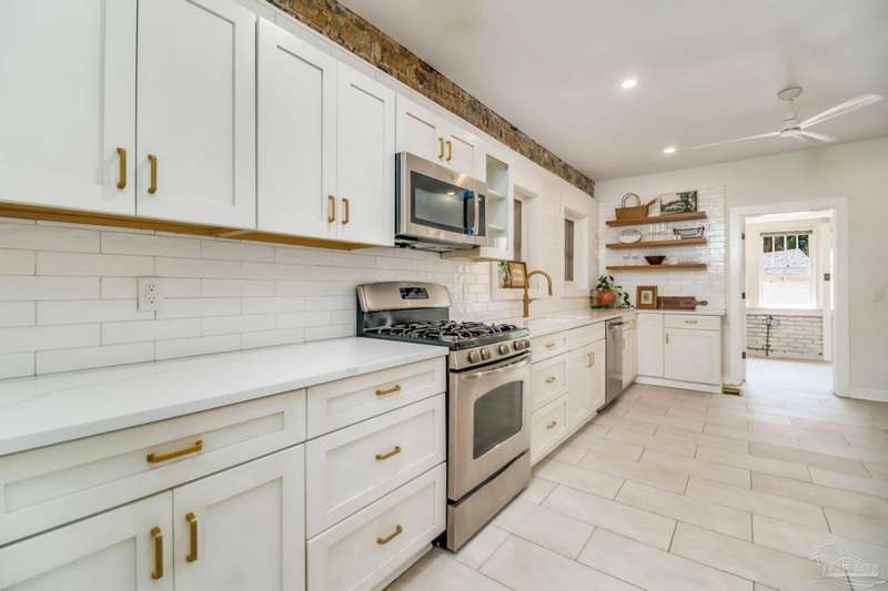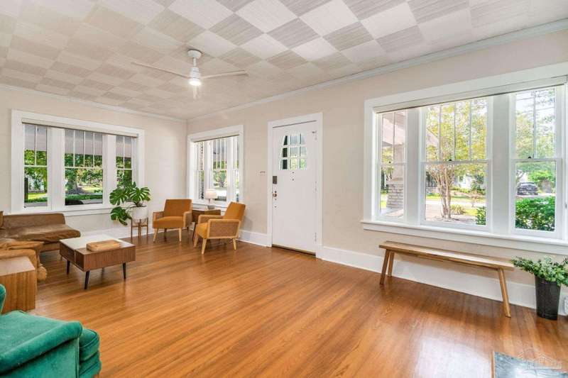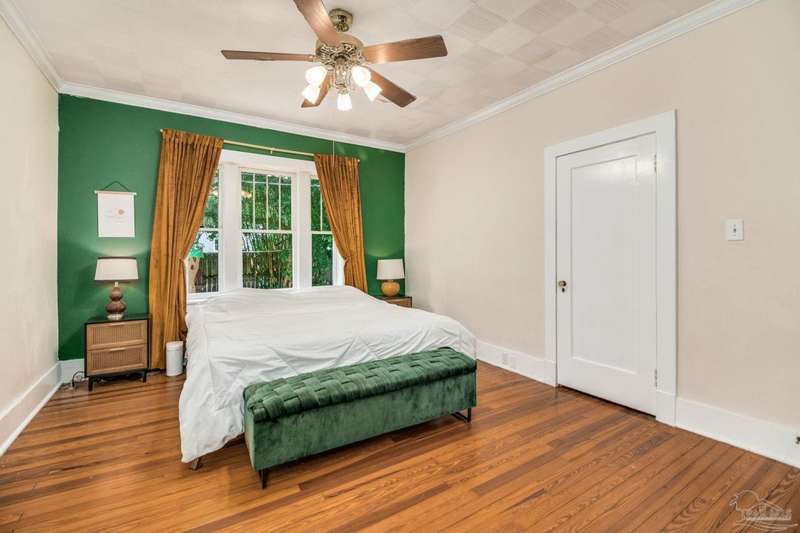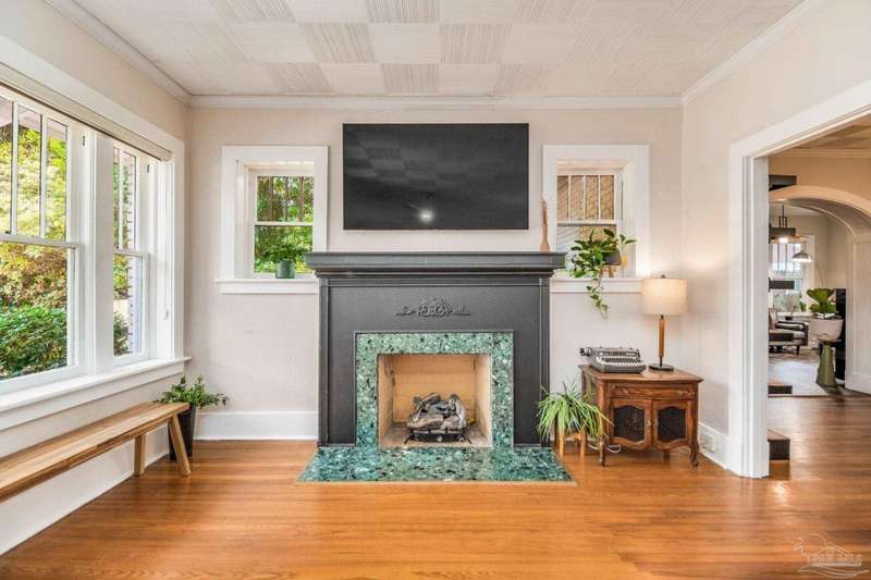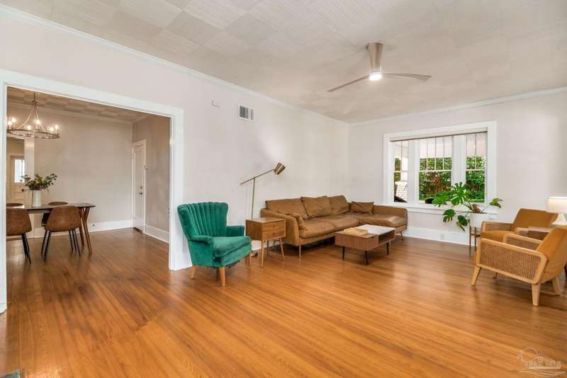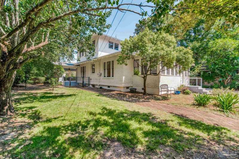 Welcome to this beautiful Craftsman home in sought-after East Hill, where tree-lined streets are filled with elegant, character-rich homes. Situated on a �¼-acre corner lot with two driveways, this home offers style, space, and versatility. Walking up, you are greeted by a wrap-around porch, the perfect space for morning coffee or evening conversations. Step into the 22x13 living room, perfect for entertaining. Featuring 9-foot ceilings, a gas fireplace, crown moulding, 8-inch baseboards, and hardwood floors. The updated chef's kitchen is a dream, with soft-close cabinets, quartz counters, subway tile backsplash, 5-burner gas stove, exposed original brick, open shelving, and dual pantries. Just off the dining room, you'll find a charming parlor filled with abundant natural light- an ideal space to relax or enjoy a good book. It also features earthen mosaic tile floors, built-ins, and a grand staircase- a perfect blend of old-world craftsmanship and warmth. The main level hosts the spacious 17x13 primary bedroom with an adjacent sunroom-ideal as a sitting area or home office, with potential for an en-suite bath or walk-in closet. A full bath and second bedroom are also on the main floor. Upstairs you'll find two extra-large bedrooms and a spacious bathroom with double sinks and a unique soaking tub. The laundry room features storage cabinets with granite counters. Bonus 968 sq. ft. of basement space-use for storage or a wine cellar. Outside, the fully fenced backyard, including an irrigation system on a private well, is designed for entertaining. A separate building with electric offers endless possibilities: an office, entertainment space, or renovate to an apartment or income-producing Airbnb. New roof(2021), hot water heater (2022) This is more than a home-it's a piece of Pensacola's history in one of its most prestigious locations. Just minutes from downtown and beautiful beaches-Come experience the lifestyle that East Hill is known for!