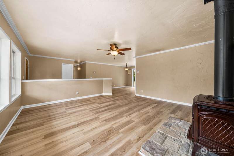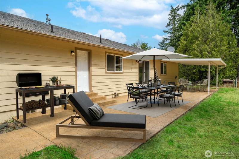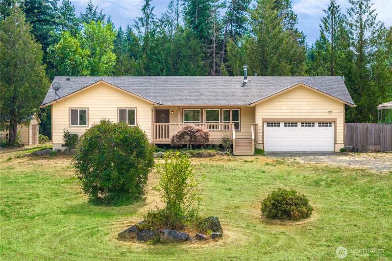Welcome to this 3 bed 1.75 bath rambler nestled on 9.69 scenic park-like acres at the end of a long private driveway. It features a spacious layout w/ new flooring and newer paint. The kitchen is bright & inviting w/ newer appliances. French doors open to expansive rear patio, while large covered front porch offers a warm welcome. Add'l features include attached 2-car garage, a detached HUGE 4-BAY SHOP w/ RV parking, large carport, circular driveway with space for a semi-truck and trailer, & pump house w/ extra storage. Enjoy peace and privacy on well-maintained grounds featuring walking paths, a seasonal creek & pond with ducks, fruit trees, & garden space—perfect for multi-generational living, home-based business, or private retreat.