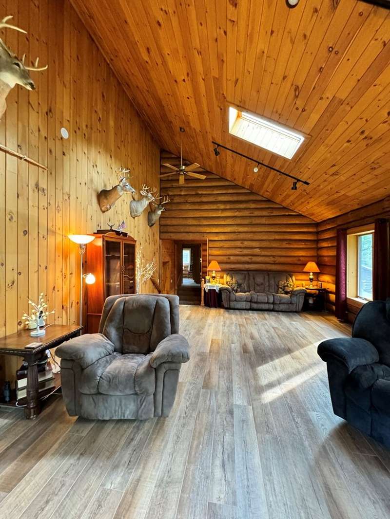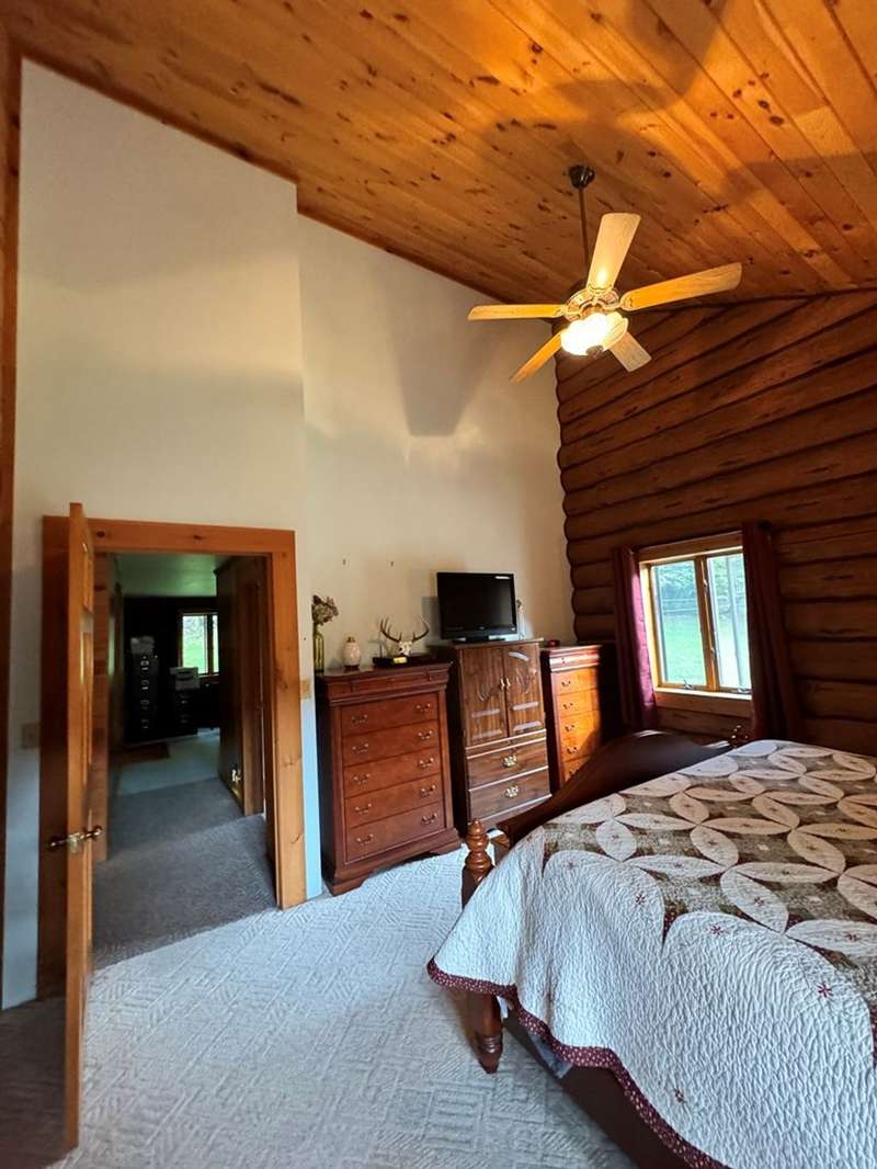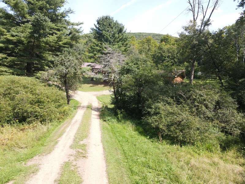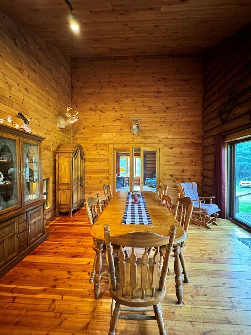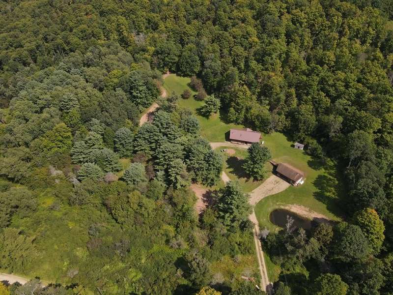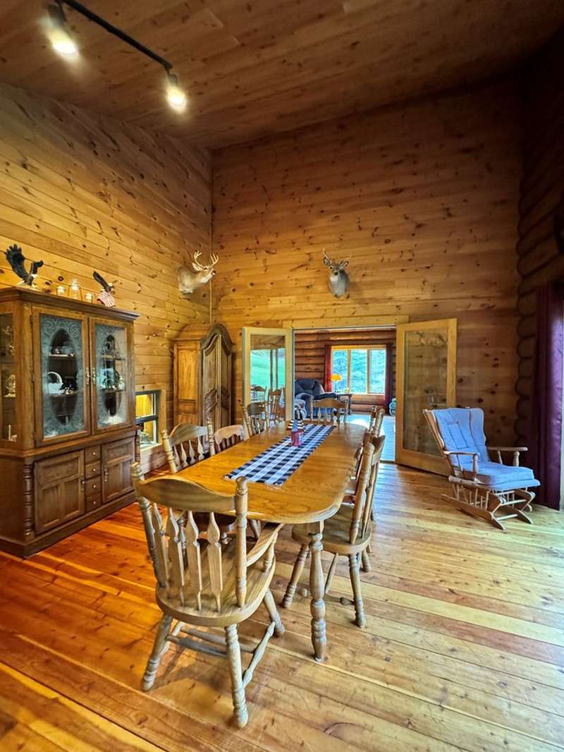 Nestled in a secluded and private dead-end road, discover this meticulously picturesque log home sitting on 90+ acres overlooking the stocked pond. While driving up the winding grass centered graveled road, time slows you down to admire the beauty of the area. The wildlife wondering with the sense of being so relax and no fright as tho they have ownership over the land with their food plots, apple trees and several springs. This custom designed log home is built to ensure durability and quality, energy efficiency and aesthetic appeal. The main house, was built around the center of the home, composing of two bedrooms, 2 full bathrooms, formal dining room, enormous living room, gourmet kitchen and home office space. In the spacious living/dining room are large full-length windows to admire the wildlife frequently frolicking around. Detached two story two car garage with large workshop area and additional storage on the second level. Numerous trails throughout. Surveyed/Clean and Green.