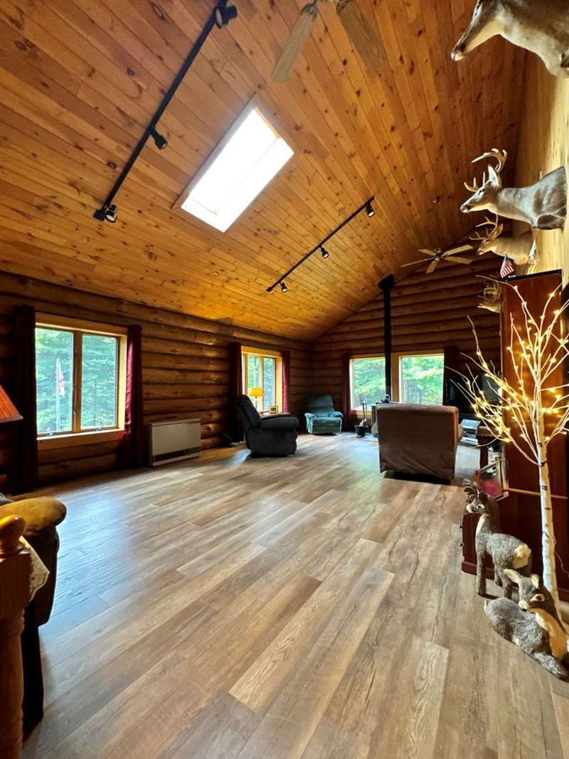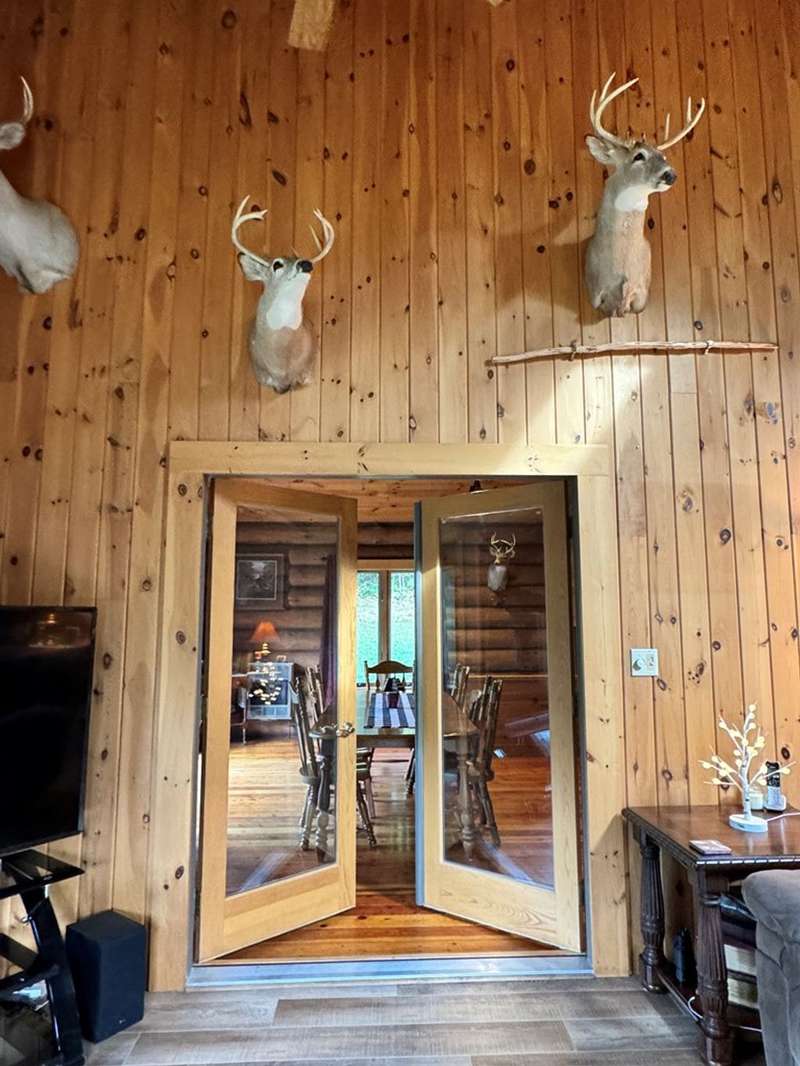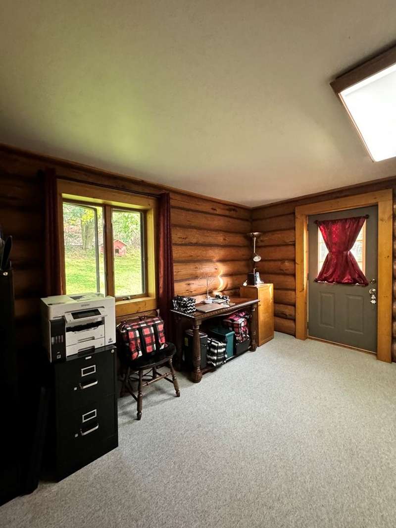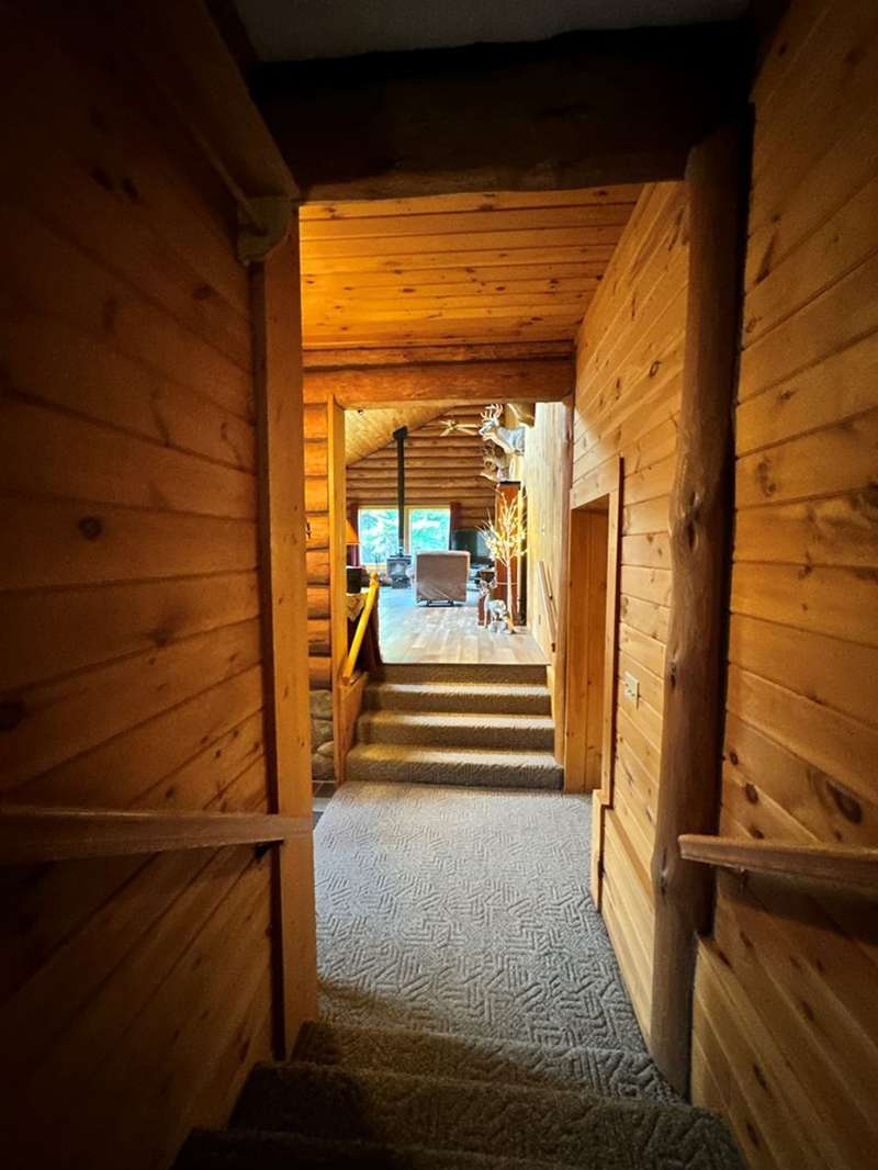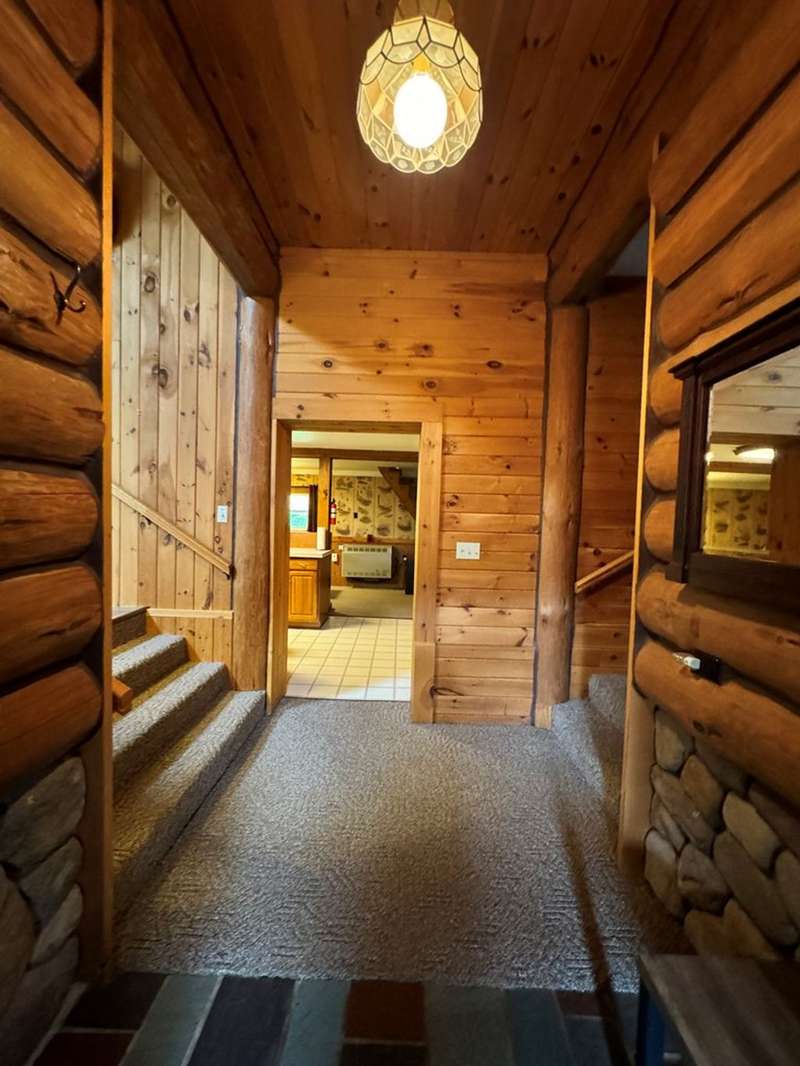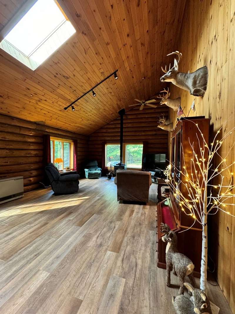 Nestled in a secluded and private dead-end road, discover this meticulously picturesque log home sitting on 90+ acres overlooking the stocked pond. While driving up the winding grass centered graveled road, time slows you down to admire the beauty of the area. The wildlife wondering with the sense of being so relax and no fright as tho they have ownership over the land with their food plots, apple trees and several springs. This custom designed log home is built to ensure durability and quality, energy efficiency and aesthetic appeal. The main house, was built around the center of the home, composing of two bedrooms, 2 full bathrooms, formal dining room, enormous living room, gourmet kitchen and home office space. In the spacious living/dining room are large full-length windows to admire the wildlife frequently frolicking around. Detached two story two car garage with large workshop area and additional storage on the second level. Numerous trails throughout. Surveyed/Clean and Green.