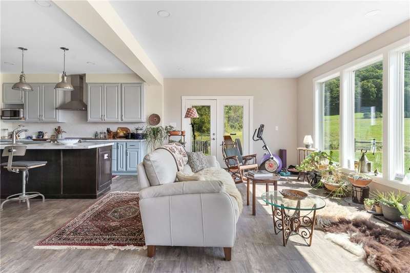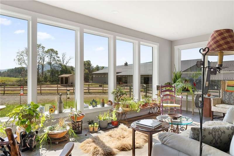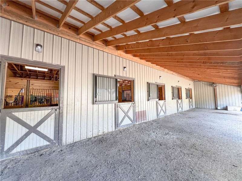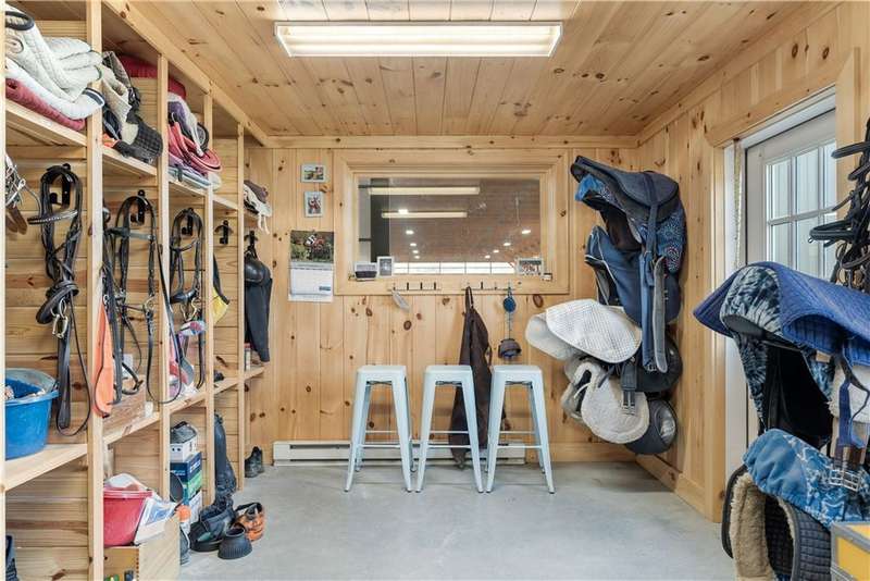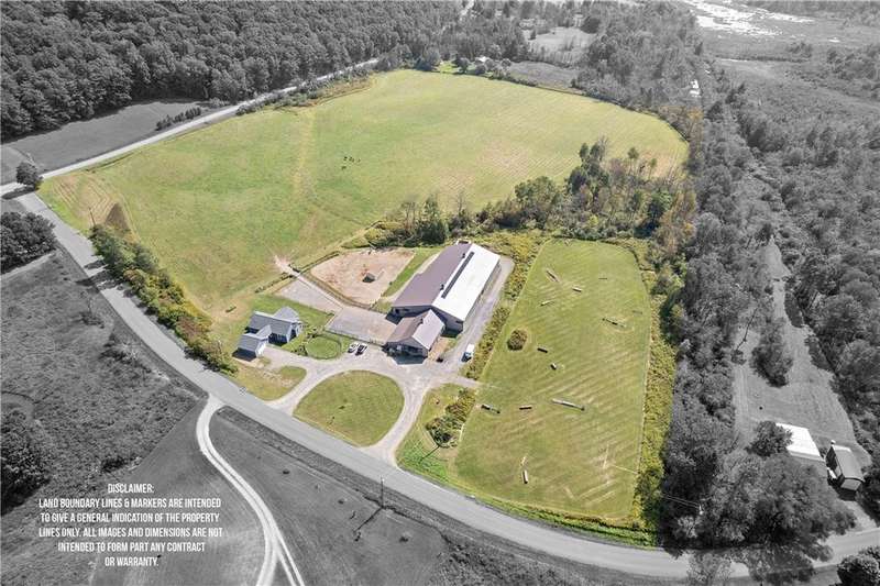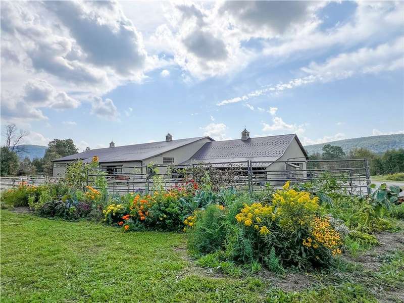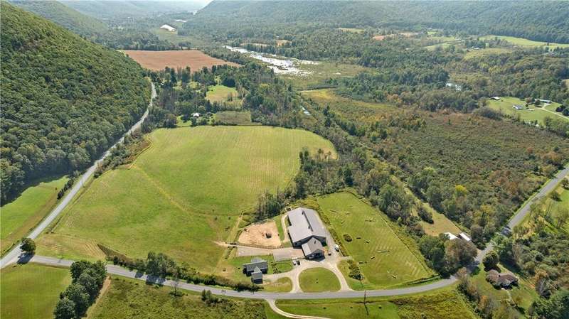 This exceptional equestrian property offers a rare combination of features. Set on 30 acres only 15 minutes from Cornell University in the Finger Lakes region, this facility's amenities are top of the line! The barn features 6 stalls, all with 12x12' mats, outlets and automatic waterers, a wash stall, heated bathroom, feed room, and heated tack room with observation area. 5 stalls have Dutch doors to the run-in shed and dry lot paddock that leads to a 20-acre pasture. The 80 x 160 indoor arena is perfect for year-round equestrian needs and the professionally built turf riding field with cross country jumps offers even more riding space. An additional paddock with run-in and large storage area off the arena round out this elite facility. Relax and watch your horses through the wall of windows in your 2020, 3-bedroom home with an open floor plan, 9 ft ceilings, lots of light, a perfect primary suite and plenty more space in the basement to expand or use for gym/rec activities. Geothermal heat for the home and solar for the house and stable result in very low utilities. Currently an income producing boutique boarding business. Continue a business or use it all for your own horses! Listed Taxes based on full amount but currently ag exempt so only paying $10,765 total annually for property taxes.