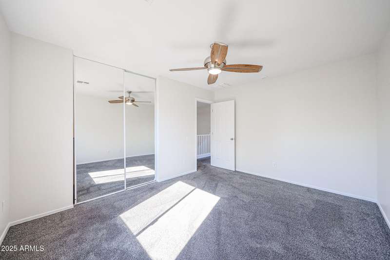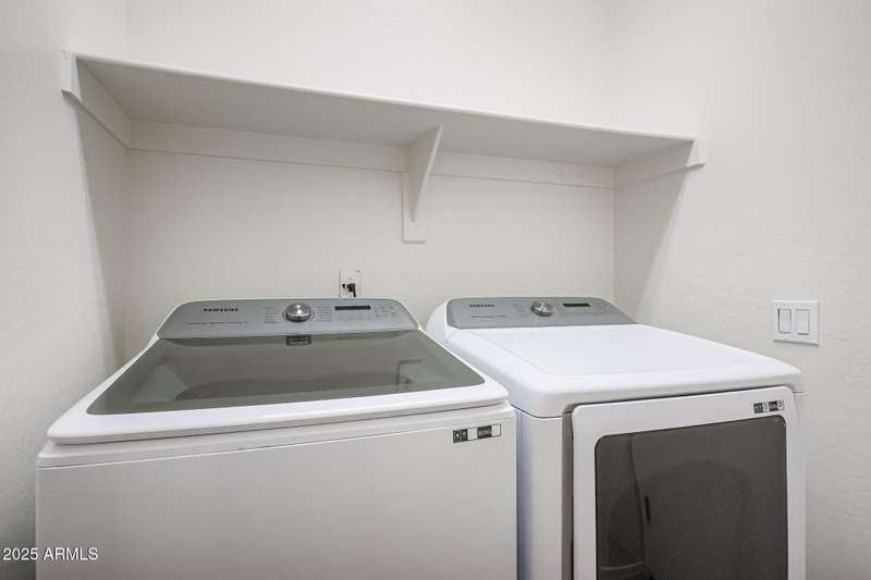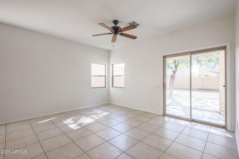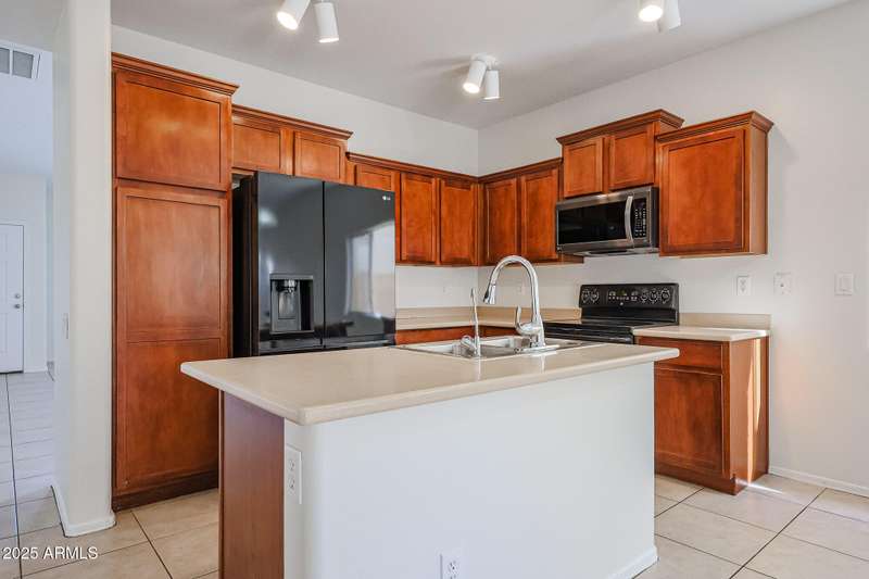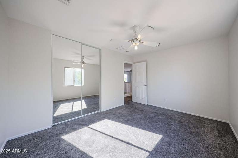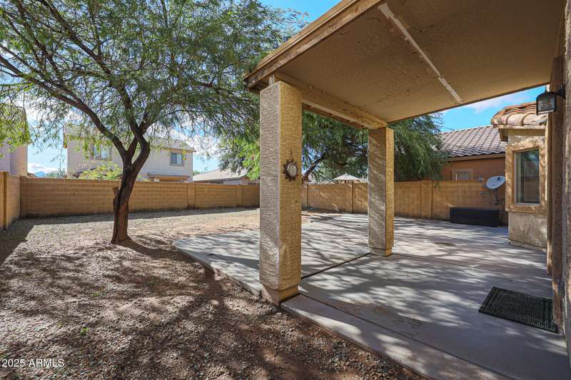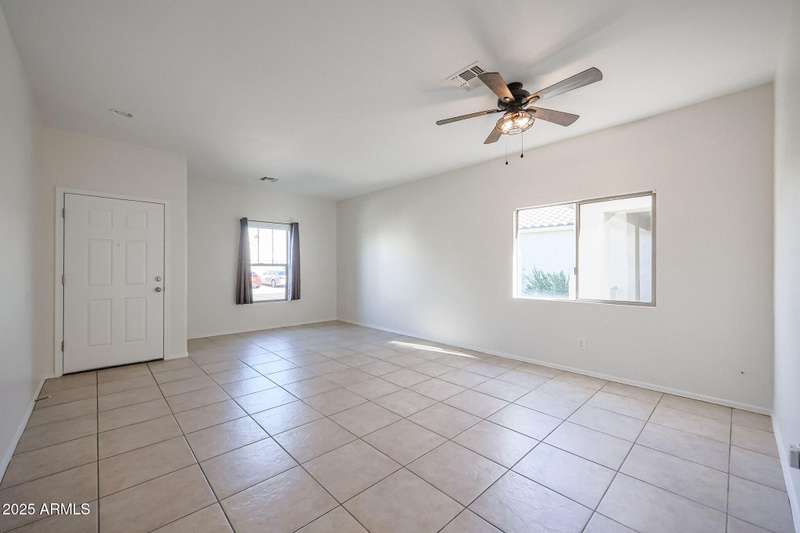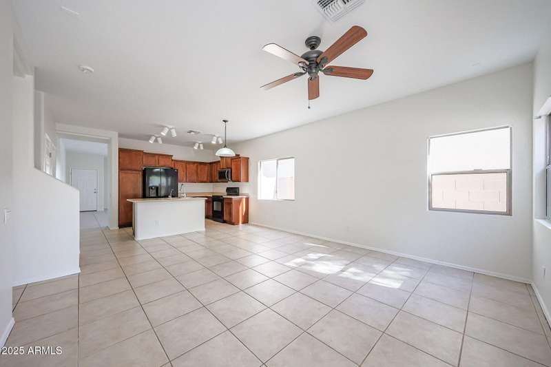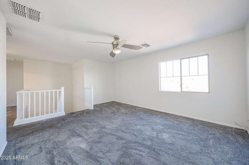 INCREDIBLE VALUE in Laveen Crossing! Spacious 4 bed, 2.5 bath home with loft offering 2,209 sq. ft. Fresh interior paint and Milgard windows add to the appeal. The downstairs bedroom includes its own bath and oversized walk-in closet. Step into an inviting formal living/dining combo, followed by a kitchen featuring cherry cabinets, Corian counters, and appliances including an LG refrigerator, all opening to the family room. Inside laundry room with washer and dryer included. Upstairs features a large loft, 3 bedrooms, and a full bath—great for children, teens, or guests. The oversized backyard is ready for your custom outdoor space. Prime cul-de-sac-location near shopping, restaurants, parks, and freeway access. A rare opportunity to get this much space and function at this price.
