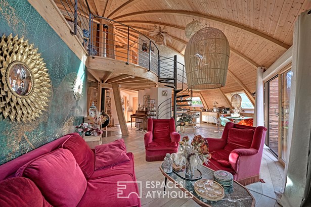 Under the bright skies of the Gard, a stone's throw from Uzes, stands a 250sqm residence unlike any other. A wooden dome, as if placed between earth and sky, designed by Domespace to inhabit dreams as much as reality.