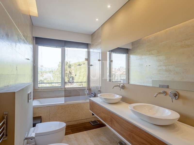 Apartamento T3+2 duplex com 274 m² de área bruta privativa e 35 m² de área bruta dependente, com vista rio, um lugar de estacionamento no logradouro e uma arrecadação na cave, inserido num prédio de charme totalmente reabilitado em 2017, localizado no Restelo, Belém, Lisboa. Destaca-se a preservação dos materiais originais ou a sua réplica fiel sempre que tal não foi possível, bem como a manutenção das linhas arquitectónicas originais. O apartamento duplex é composto, no piso inferior, por hall de entrada, escritório, sala de estar, sala de jantar, cozinha moderna totalmente equipada e lavabo social. Neste piso há ainda uma varanda comum à sala de jantar e à cozinha. Umas escadas em madeira dão acesso ao piso superior, onde ao centro se encontra uma sala de estar/televisão que distribui, para cada um dos lados, uma suíte muito luminosa com uma ampla janela envidraçada com vista para o Rio Tejo, dois closets e uma casa de banho com duche e banheira, dois quartos com closets e uma varanda comum, e uma casa de banho completa. O layout existente poderá ser adaptado, havendo a possibilidade, entre outras, de criar mais um quarto e uma casa de banho. O imóvel tem três pisos acima do solo e uma cave, sendo que este apartamento se localiza no 2.º andar. O acesso faz-se por uma belíssima escada de época em madeira e ferro forjado, cuidadosamente restaurada. Localizado no Restelo, Belém, numa zona com ampla oferta de comércio e serviços, muito próximo do Mercado de Algés, a 10 minutos de condução de vários monumentos históricos nacionais, tais como o Mosteiro dos Jerónimos, Centro Cultural de Belém, Padrão dos Descobrimentos, Torre de Belém e Palácio Nacional da Ajuda. Encontra-se a 8 minutos do Externato Santa Maria de Belém e da Park International School, a 5 minutos do Externato São José do Restelo e do Hospital de São Francisco Xavier, e a 20 minutos do Aeroporto Humberto Delgado. Oferece fácil acesso à CRIL e à A5. Categoria Energética: C #ref:94315