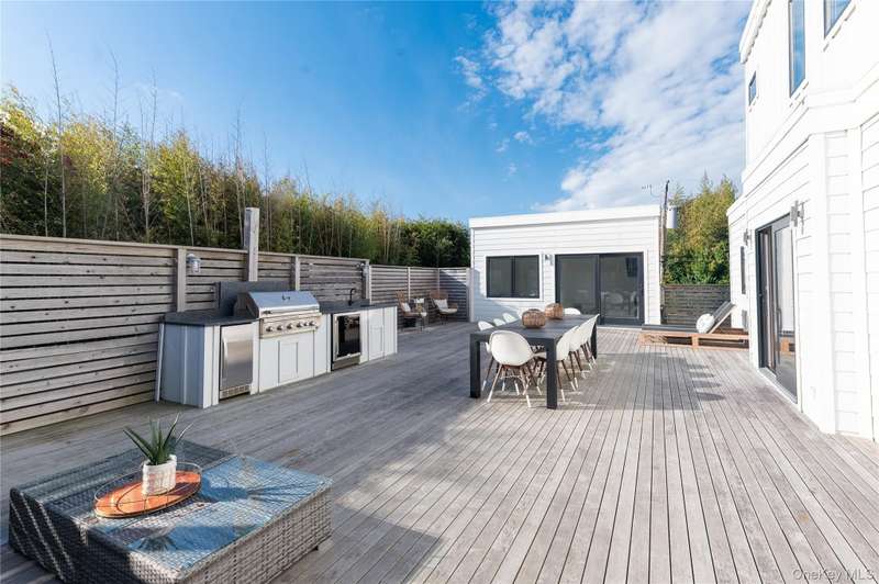 Welcome to your dream coastal escape in Seaview, Fire Island, a picturesque beachside village, where laid-back luxury meets timeless charm. This spacious and beautifully appointed vacation home offers the perfect setting for unforgettable seaside getaways. Featuring a chef’s kitchen, spacious living and dining areas, two spacious primary suites, a junior suite, and two additional bedrooms, appointed with luxurious finishes, this home blends ease of entertaining and intimate locations for privacy. A seamless connection to outdoor living, with the expansive deck and rooftop living space…. It’s ideal for sunset cocktails, stargazing, or simply soaking in panoramic views.