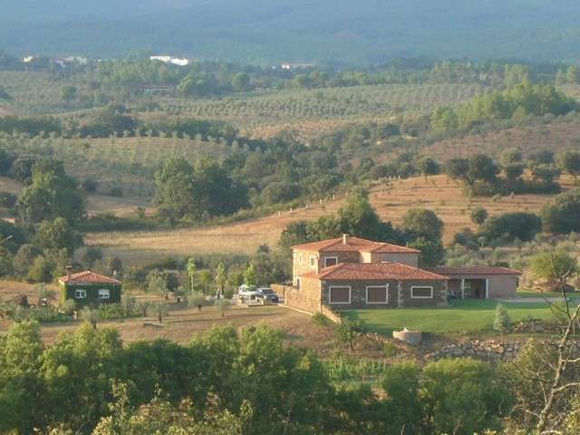 Exclusive farm in the middle of the countryside in the Spanish province of Cáceres, Extremadura, 5km south west of Valverde del Fresno. It is ideally located on the border with Portugal, offering easy access to Madrid and Lisbon. This magnificent country estate is the perfect place for spending free time doing sports (horse riding, hunting expeditions, hiking, etc) or simply meeting up with large families or groups of friends. It is surrounded by public rivers, most importantly the River Elja which leads onto the border with Portugal. This wonderful estate, which is more than two hundred years old, boasts its own farming plantations and all the necessary facilities for raising livestock. It includes 50 hectares of land, comprising natural woodland, farming areas with fruit trees and vegetable plantations (including olive groves which, despite being more than a century old, still produce), various buildings and a garden area with a pool. The main house, which covers an area of 500 square metres and was restored in 2007, stands out for high-quality materials used in the interiors (including local granite, slate, marble etc.). The farmhouse is split over two floors and comprises five bedrooms, all with their own bathrooms. The luxury master suite occupies the entire second floor and features a walk-in dresser and a private living room. Downstairs, there is a modern 40 m2 kitchen, which has been fully renovated, and two other bathrooms. next to an exquisite dining room with a fireplace and the spacious main lounge. Finally, the complex also boasts an independent, 90-metre-square house for staff and a farm with four stables, a room for machinery, storage areas, and vet rooms. The property is fitted with a gasoil heating system, automatic irrigation systems for the garden, electricity and an alarm which links to the local Spanish police. Water for the house, farm and garden comes from a well and is cleaned via a purification system. Living in this marvellous construction is one of the best ways of blending ecology, nature, comfort and exclusivity.