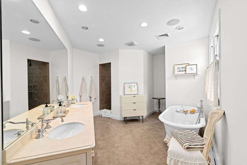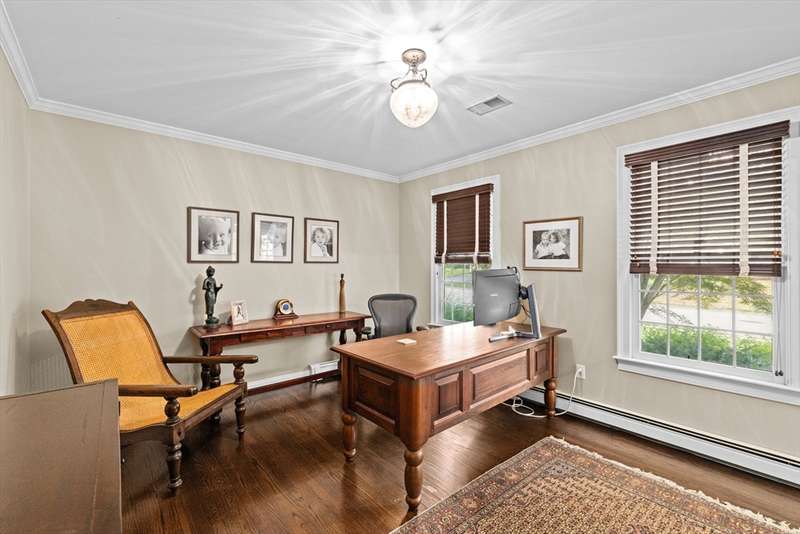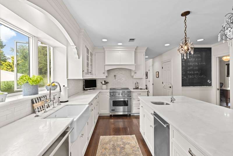 Set in a central location on a highly coveted cul-de-sac, this renovated 5-bedroom colonial is a rare find. The home features a stunning kitchen with high-end appliances, marble counters, crisp white cabinetry, large island, and breakfast nook, flowing into an open dining room—an entertainer’s dream. A family room features cathedral ceilings, wood-burning fireplace, first-floor office, and oversized mudroom to add function and charm. The expanded primary suite boasts a private staircase, dream walk-in closet and dressing room, spa bath with soaking tub, and a spacious sitting area. Four additional bedrooms and two baths complete the second floor, with walk-up attic and finished basement for flexible space. Updated windows, roof, heating, whole-house generator, and an expansive, PRIVATE backyard with new patio. Conveniently located near the town common, recreation fields, tennis courts, library, and the shops, marinas, and restaurants of Scituate Harbor.