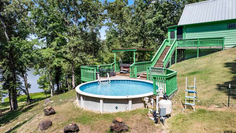 The minute you enter the Private Gate you feel the Tranquility and Peace that this Dream Getaway exudes. Beautiful Towering Trees, Park like setting and one of the most beautiful views of the Twin Lakes. The property conveyed is 1.529 acres, however, the owner also enjoys and maintains the surrounding 2 acres of cleared land that is part of the Share Holder Property. The Lakes are Private to 30 Shareholders, their family members and guests. Stocked with Bass, Crappy, Catfish & Brim makes for a Great Fishing experience. There is a no wake boat motor restriction in place for the enjoyment of all. This is a Slice of Heaven from the updated Lakeside Cabin that includes 3 bedrooms 2 baths and 2 living areas. Kitchen boasts granite countertops and stainless appliances. The rock fireplace w/ gas logs will be a highlight during those enjoyable cool nights. The views from the screen porch, lakeside pool and separate Jacuzzi hot tub are spectacular! The private fishing pier extends well into the lake to make catching fish even easier! Also included is an outbuilding with large storage/garage, carports on both sides of garage and dog run. Water is supplied with private filtered well and the septic system is aerobic. A Generac generator for the entire house includes 50 amp outlet for RV. Don't miss out on this amazing opportunity to enjoy the out of doors with friends and family. A Very special retreat for any situation!