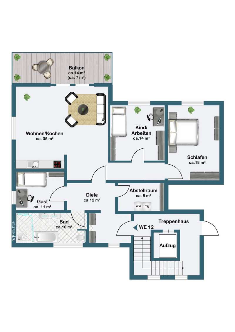 A modern 4-room apartment in an ideal residential location in Cottbus is for sale. The unit is located on the 2nd floor of an apartment building with seven residential units built in 2020/2021 and is currently rented out. The tenancy has existed since 2020 and the co-income currently amounts to € 14,640.00 cold rent / year. The house is part of a residential complex in mint condition. The offer includes an underground parking space with wallbox in the special right of use as well as a cellar room. The property was built in an ultra-modern style and impresses with its contemporary furnishings and well thought-out floor plan. The apartment is easily accessible without steps via an elevator. High-quality parquet flooring was chosen for the floors and the bathroom is tiled. The entire living space is comfortably heated via underfloor heating. The floor plan is ideal. The hallway is accessed from the separate entrance area. From here you enter the bright daylight bathroom - equipped with a walk-in shower and bathtub. The study and storage room are also located in this area. The large living/kitchen area is arranged to the west with access to the balcony. The children's room and bedroom are accessed via this area. The cellar room offers sufficient storage space. The underground parking space provides security and offers a wall box for practical charging of electric vehicles. This attractive offer promises to be a worthwhile investment thanks to the popular and very good residential location as well as the property's as-new condition.