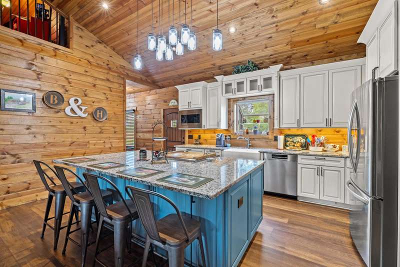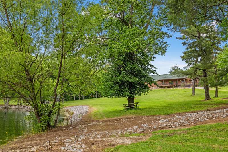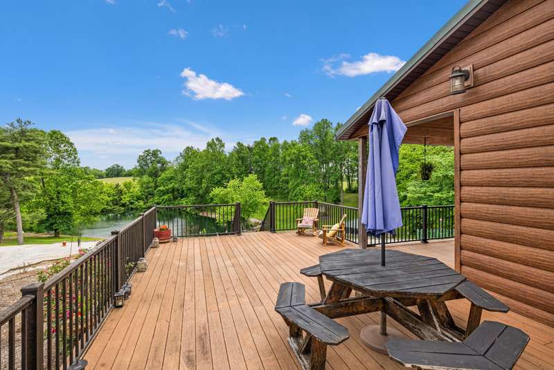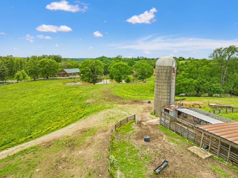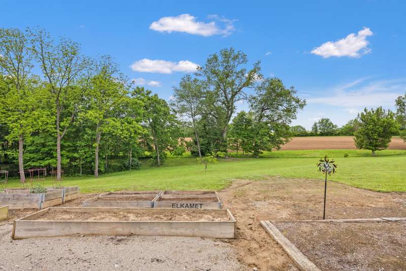 Designed with thoughtful craftsmanship and built for lasting quality, this one-of-a-kind lodge-style retreat is nestled on approximately 39.59 acres-just minutes from the heart of Frankfort, yet worlds away in feel. With wood-look steel siding and a high-grade metal roof, this home blends timeless rural charm with the benefits of energy efficiency and low-maintenance living. Inside, rich textures of reclaimed barn wood infuse warmth and character into the basement, garage, and spacious craft room. The heart of the home is an expansive great room, perfect for gathering, where vintage-style oscillating fans stir the fresh country air drifting through open windows. A large country kitchen anchors the living space, featuring granite countertops, soft-close cabinetry, a center island with cooktop, and seamless flow into the great room-ideal for entertaining. Three bedrooms each offer cedar-lined closets, while the three full bathrooms feature beautifully tiled walk-in showers. A versatile loft overlooks the main living area and serves as the perfect home office, reading nook, or hobby space.. The finished walk-out basement includes a generous entertainment space, wet bar, and accessible full bathperfect for hosting. Durable exposed concrete floors make post-party cleanup a breeze. Step outside to enjoy a partially covered wrap-around deck with pergola, a patio cooled by outdoor ceiling fans, and an outdoor shower with easy winterization access. A serene stocked lake with fountain and screened pavilionequipped with stone fireplace, water, and electricadds to the allure of the grounds. Other outdoor highlights include two additional ponds, a natural spring, orchard with apple, peach, and cherry trees, and a charming playhouse. For agricultural pursuits, the property includes a barn with water, electric, shed, and shop, plus a silo with feeding shed and ample fencingready for livestock or hobby farming. Additional features include: " Carrier geothermal system with humidifier and dehumidifier " Martin-brand windows and walkout doors " Triple-clamped metal roof " Easy drive-up access to basement level A rare opportunity to own a property that offers the peace and privacy of rural living without sacrificing modern convenienceswhere every detail invites you to relax, entertain, and enjoy nature in every season.