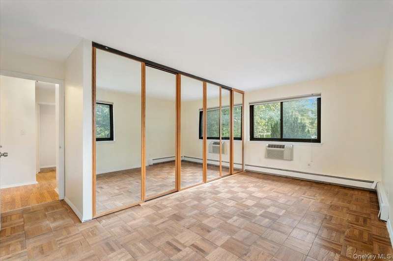 Centrally located and tranquil apartment nestled in Scarsdale Ridge offers three bedrooms and two full bathrooms - sun-drenched and freshly painted corner unit with southern exposure, hardwood floors, nice sized bedrooms and large storage spaces. Primary bedroom features a primary bathroom, walk-in closet and built-in shelves. The balcony overlooks the pool and Greenburgh Nature Center. New range and refrigerator. Pet friendly neighborhood with amenities include basketball court, playground and pool. 12 minute walk to award winning Edgemont Junior/Senior High School. Close to highways, park, public transportation, restaurants and shopping centers. Cable, cooking gas, heat, hot water and one assigned parking are included. Laundry room in the adjacent building with code access. A must see!