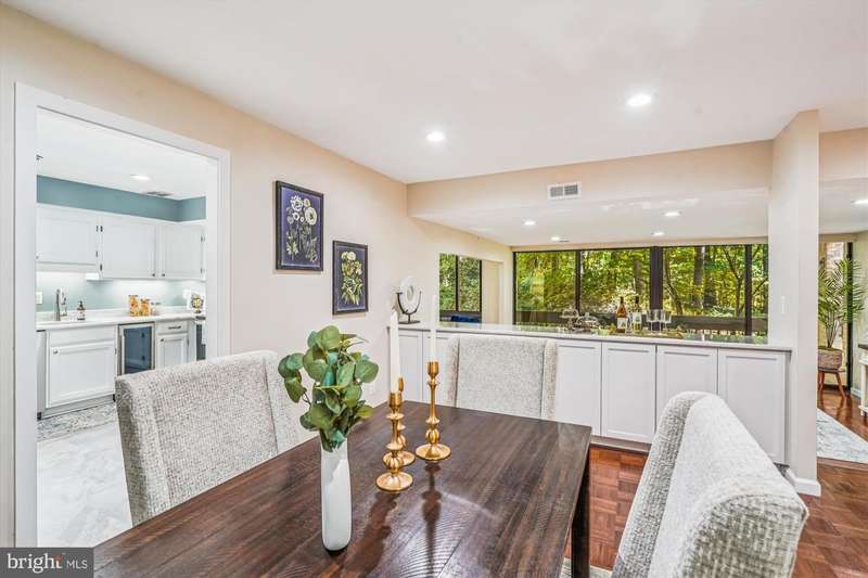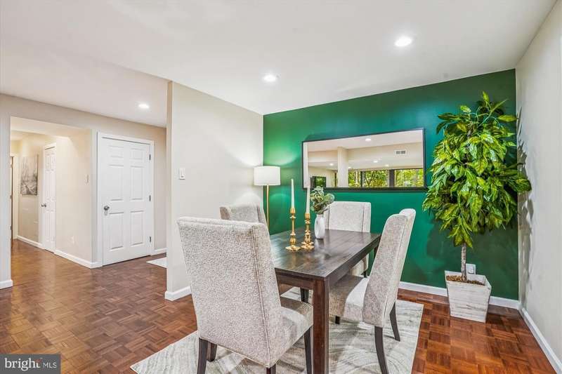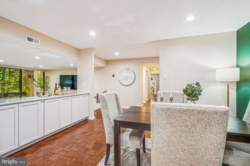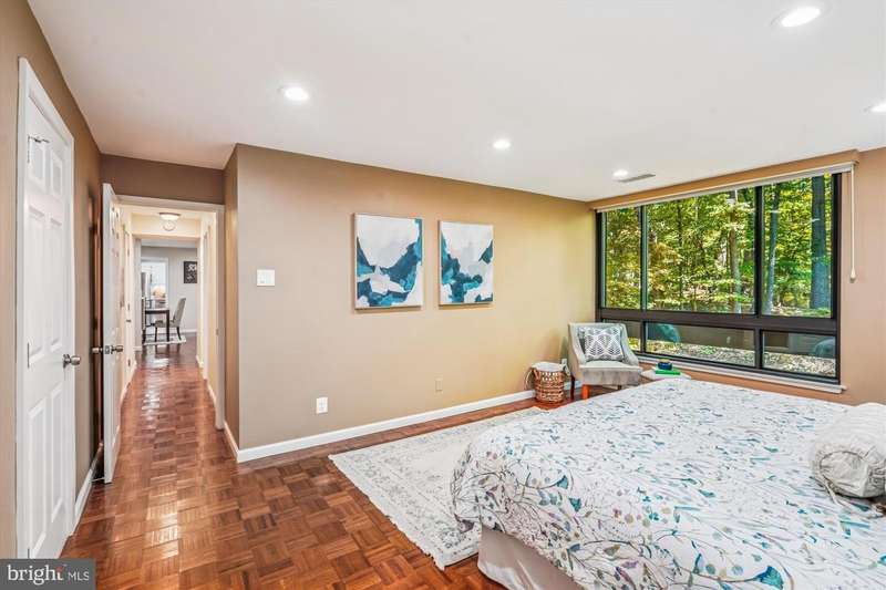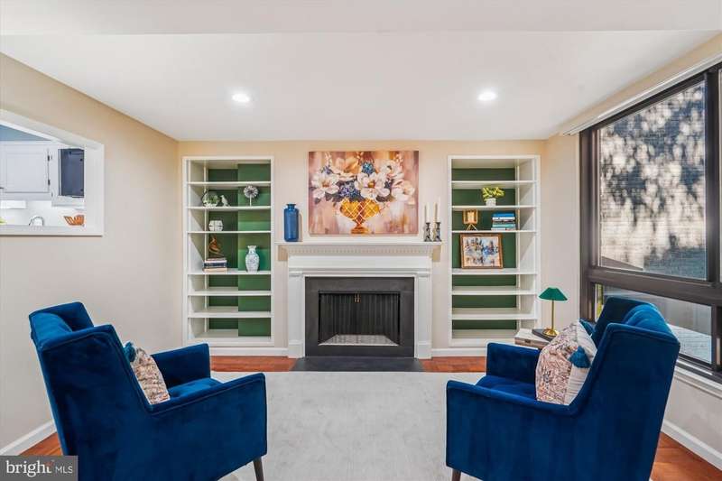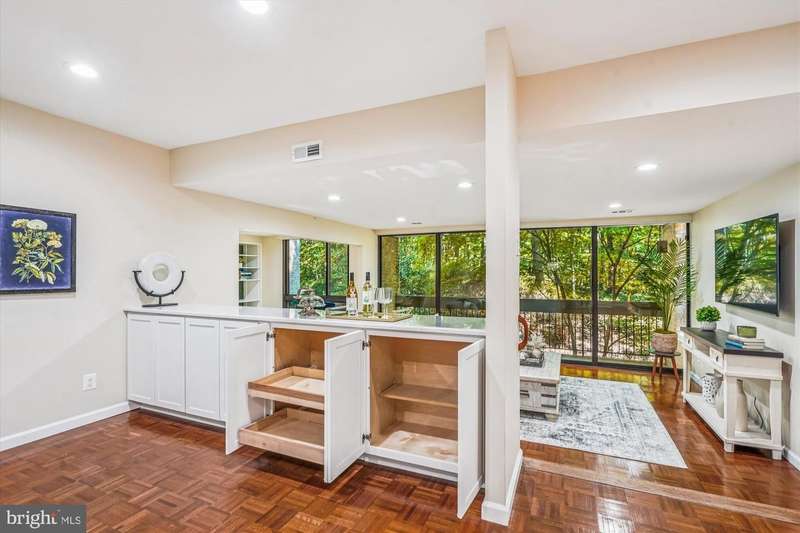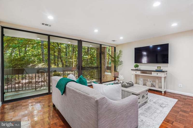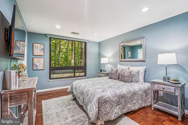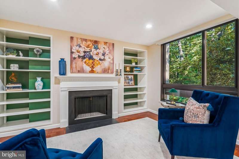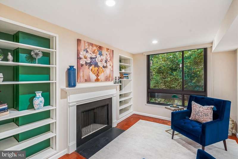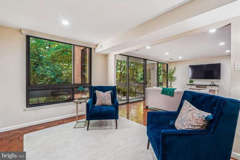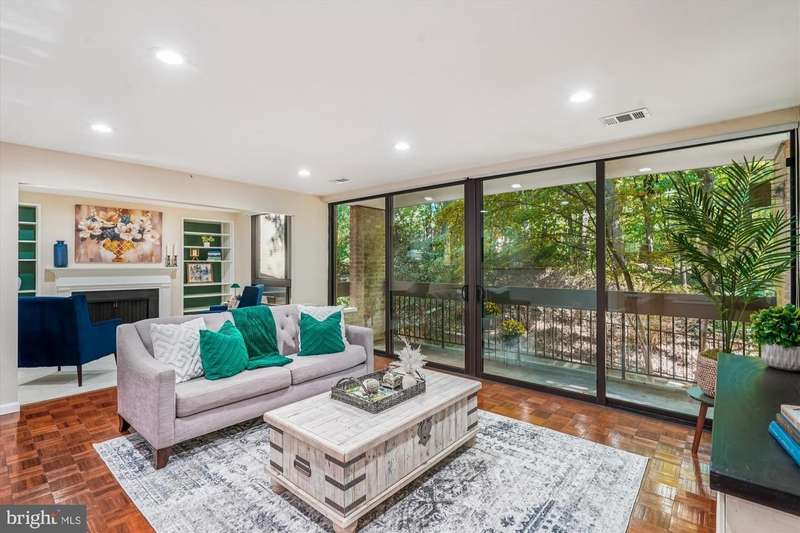 Lovely 2 Bedroom & Den, 2 Bath Condo with fireplace (1524 SF) featuring a large balcony overlooking the beautiful woodlands of Sumner Village. Along with all of the amazing amenities in this sought-after community including pool, tennis, pickleball, BBQ area, walking trails, private gate to North Capitol Trail, this condo comes with one assigned parking spot (#205) and a storage cage . The lobby has no steps leading to the elevator and the hallway to apt 205 has no steps to reach the front door. Inside you'll find extensive and recent (2-4 yrs) updating, replacements, and improvements. These recent improvements include: an updated kitchen with a wall of custom cabinets, quartz topped buffet/cabinetry in dining room, vinyl windows/slider, recessed lighting, appliances (fridge, dishwasher, washer/dryer, etc.), hot water heater, painting and new baseboards & interior doors, blinds, and both bathrooms remodeled (2023!). This amazing property looks out on the quiet woodlands of Sumner Village, a wildlife friendly property adjacent to Little Falls Valley Stream Park. This quiet and beautiful location is so serene that it's sometimes hard to remember it is so close to the Potomac River and DC line - and with a private gate to the shopping plaza next door!