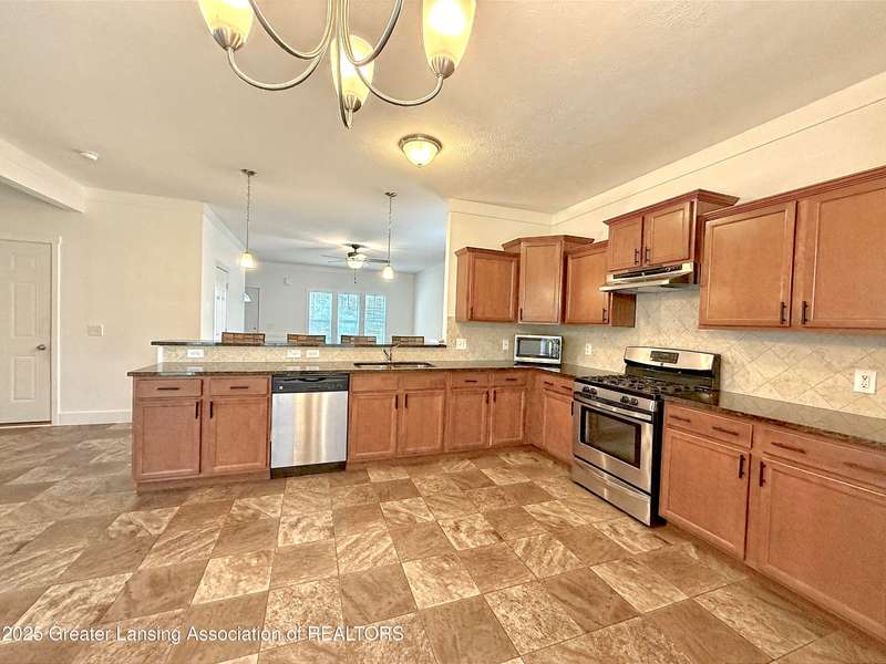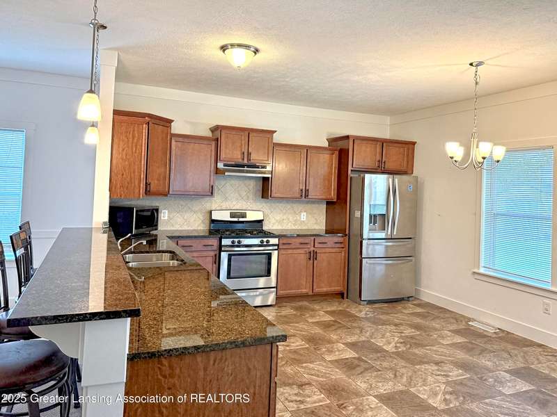 Back on the market through no fault of seller or house! This beautiful 3 bed, 2 1/2 bath home has it all. You'll be delighted by the open floor plan and kitchen, which is well-appointed with ample storage and counter space, featuring granite countertops and stainless steel appliances. You'll also enjoy 9 foot ceilings throughout the home and a family room off of the kitchen with many windows that fill the room with an abundance of natural light. On the second floor you'll find a primary suite with ample room in the deep walk-in closet. The loft space offers endless possibilities for creating a second living and entertainment area, a play area, or an office. It's a spacious and versatile area that can be customized to fit your need Hookups for a washer and dryer can be found in the second floor laundry room, or if you choose to keep the laundry in the basement the space can be transformed into additional storage. The oversized 2 car garage has plenty of extra room to create a workspace, which can be used comfortably in the winter with the insulated garage door. Step outside to see what sets this home apart from others on the market. You will enjoy a large covered patio and a fully fenced-in oversized back yard, perfect for pets, gardening or spending time outdoors during our beautiful Michigan summers. There is also a shed to store all of your lawn and garden tools and equipment. Your grass will be the lushest on the block with the underground irrigation system. This beautiful home in the highly desirable Meadow Ridge subdivision is in close proximity to Holt schools and it's just minutes from the highway. Don't miss out on the opportunity to make this one yours ~ Schedule your showing before it's too late!