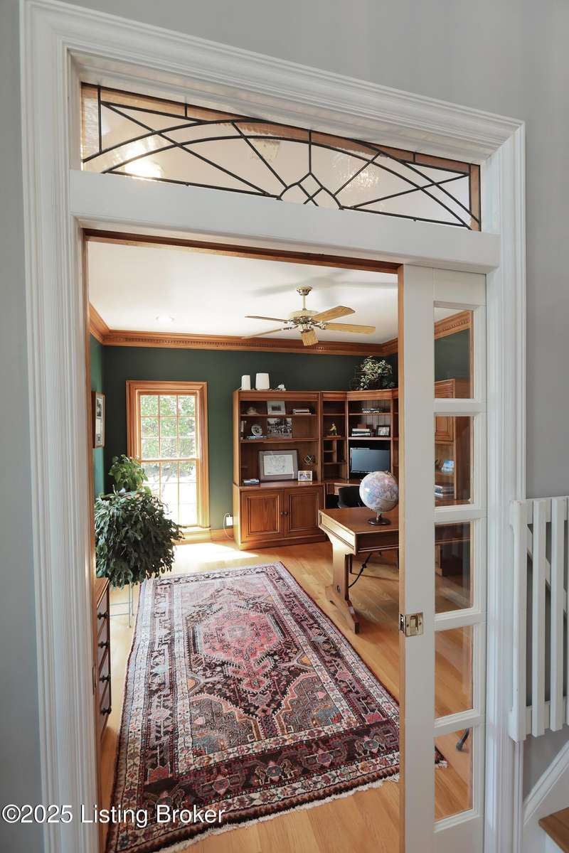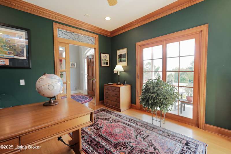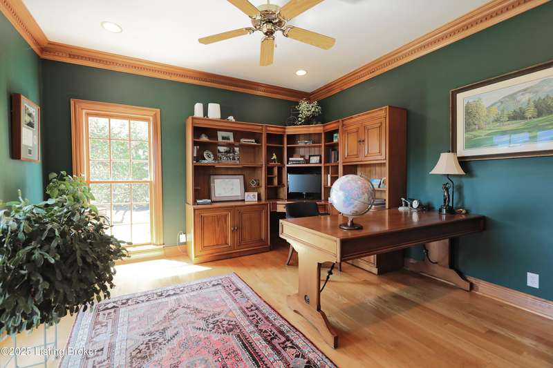 COMING SOON! This Southern Living custom-built residence is pure charm and elegance, perfectly situated on a beautifully landscaped one-acre corner lot. From the moment you arrive at the circular drive, the home's presence draws you in—the brick steps leading to an expansive covered front porch beckons you to ''sit a spell,'' while the lush, private grounds create a park-like setting ideal for both grand entertaining and quiet evenings at home. Inside, the thoughtful design unfolds with soaring ceilings, hardwood flooring throughout, timeless architectural details, and abundant natural light. A welcoming foyer is flanked by a handsome study with etched glass transom detail, which could also serve as a music room or cozy reading nook. The formal dining room offers wainscoting, a recessed niche, and the perfect backdrop for memorable gatherings. At the center of this open plan is the great room, with stunning vaulted ceiling, a gas fireplace framed by built-ins, a wall of windows, and French doors leading to the patio--all balanced by the graceful second-floor balcony that overlooks this space and the 2-story foyer. Designed for both daily living and entertaining the true heart of the home is the eat-in kitchen, hearth room, and sunroom, all seamlessly blended. The kitchen offers an abundance of white cabinetry, including built-in china cabinet, center island with breakfast bar, a banquette-style breakfast nook framed by charming built-ins, and a walk-in pantry with solid shelving. The adjoining hearth room features a stone fireplace and more custom built-ins, while the light-filled sunroom provides year-round enjoyment and direct access to the front porch. The main-floor primary suite is a serene retreat with hardwood flooring, a luxurious spa-like bathroom featuring newly renovated walk-in shower and tile flooring, garden tub, expansive vanity with dual sinks, water closet and generous split his/her walk-in closet with built-in design. A guest powder room and main-floor laundry with side porch entry, drop zone and utility sink complete this level! Upstairs, discover a private en-suite with charming built-ins and window seat, walk-in closet and private bathroom. Two additional bedrooms share a Jack-and-Jill bathroom--one with built-ins and window seat, while the other adjoins a cozy study with a built-in desk. A giant bonus room offers endless possibilities--playroom, gym, media room, or second-floor den. Additional highlights include, a three-car garage forming a courtyard connection to the expansive patio, lush landscaped privacy and a perfect spot for your future in-ground pool if desired! Need more than 4,488 square feet of living space? No problem--there is more than 2,600 square feet of possibilities in the unfinished basement awaiting your vision and design! Ask about the numerous updates which include new roof in 2025, upper level replacement windows, newer furnace and AC units, and so much more!! Nestled in The Meadows enclave within the Estates of Hunting Creek, also within the coveted Oldham County school district, you'll enjoy the benefits of a vibrant lifestyle with a social club, Olympic-sized pool, tennis and pickleball courts, and a top-rated golf course. All of this, in the heart of Prospect, which offers the convenience and lifestyle you've been dreaming of!
