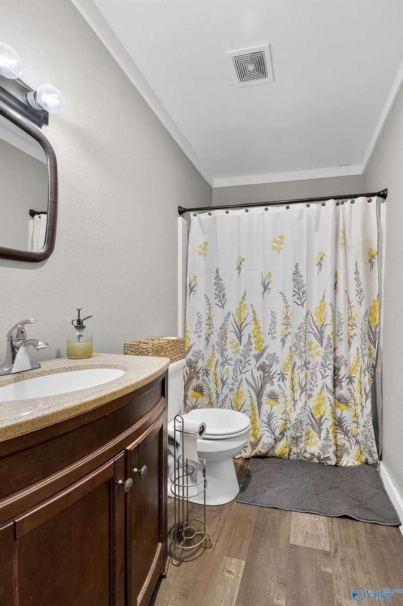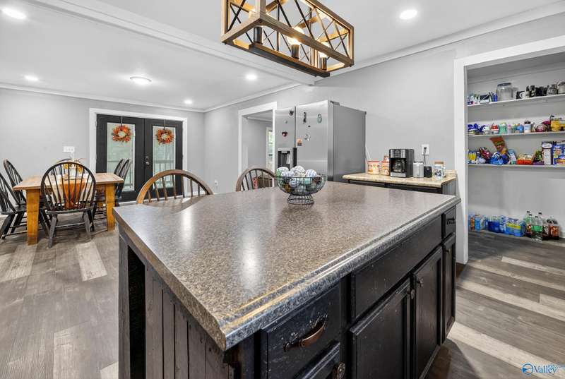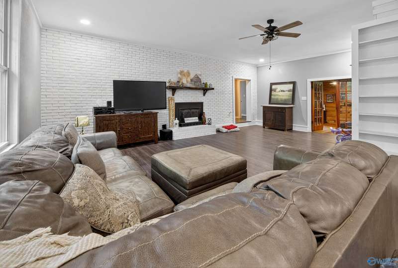 Sardis --Farm House with 35+/-ac w/ updated home with 5BR/2BA; Large GR w/built-in cabentry & fp w/wood insert; DR, Kitchen w/ island & extra-large pantry; Master BR on main level w/two WI closets; Master BA w/dbl vanities & garden tub; Office w/hdwd flooring & french doors to covered back porch; BR downstairs w/sitting room & stubbed for 3rd Bath; Small Cove on property, nice view from back; 3 sheds, flat to rolling land w/blueberry bushes, apple trees & chicken coop. Peaceful country living w/natural walking trails perfect for hunt or relaxing while enjoying the outdoors. Great Location & private setting!