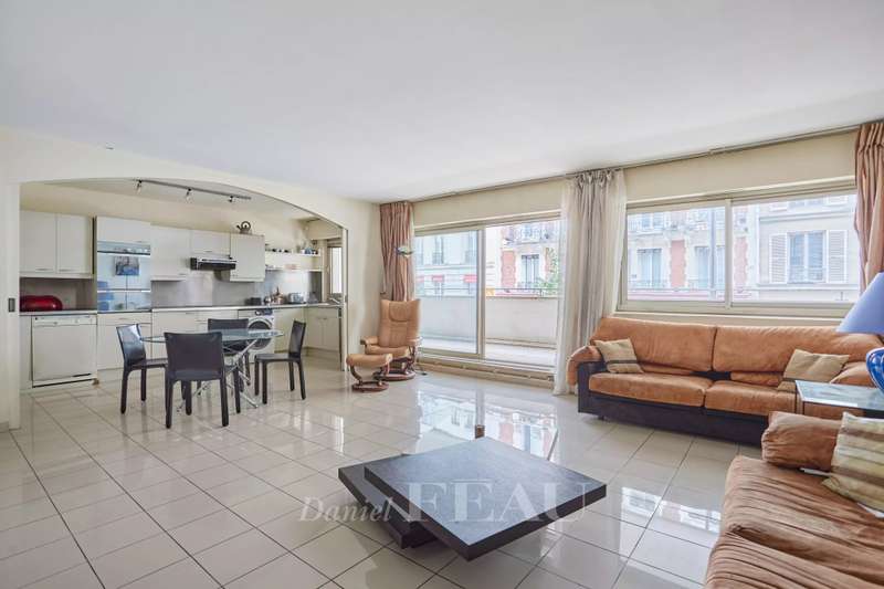 Montparnasse neighbourhood. This 110 sqm apartment benefiting from a terrace and balcony is on the 1st floor of a relatively recent building with a lift. It includes a spacious living/reception room opening onto a wide terrace, an equipped open-plan kitchen, three bedrooms each opening onto a wide balcony, two bathrooms and a wc. With a cellar and a parking space. Refurbishment is required to exploit the full potential.