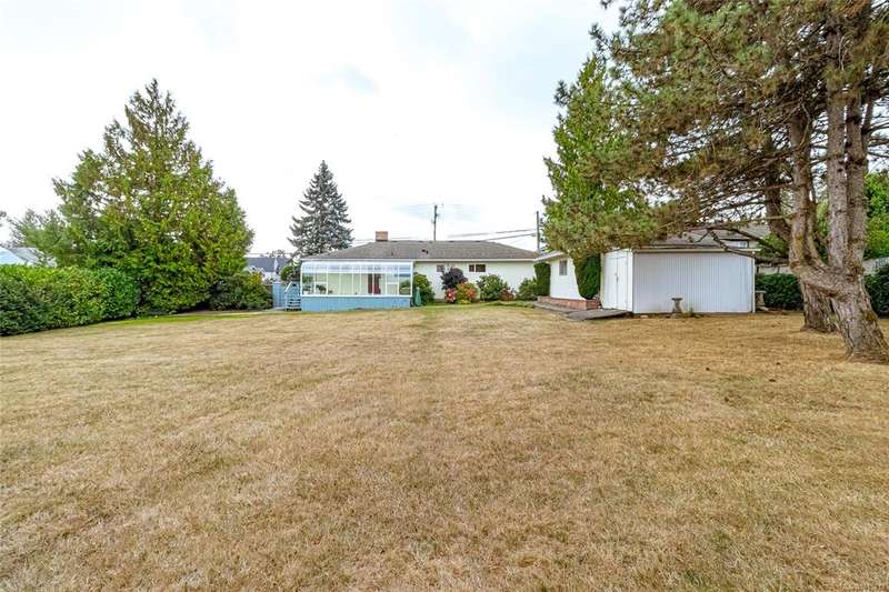Welcome to this classic 1958 rancher located in one of Duncan’s growing neighborhoods. Situated on a generous 100’ x 163’ lot (1/3 acre), this home offers excellent development potential or the chance to renovate and make it your own. The home retains its original character and is ready for updates and modernization to truly unlock its value. The layout includes three bedrooms, one bathroom, a spacious living and dining area, kitchen, laundry, and a full glass sunroom overlooking the huge, quiet, and private backyard—ideal for gatherings, gardening, or simply enjoying the outdoors. Ample storage throughout and great parking for a boat or RV add even more practicality. A separate full workshop is perfect for hobbies, crafts, or additional storage. Just minutes from schools, grocery stores, coffee shops, and all town conveniences. Whether you’re seeking a solid family home, a renovation project, or an investment with development potential, this property is a must-see.