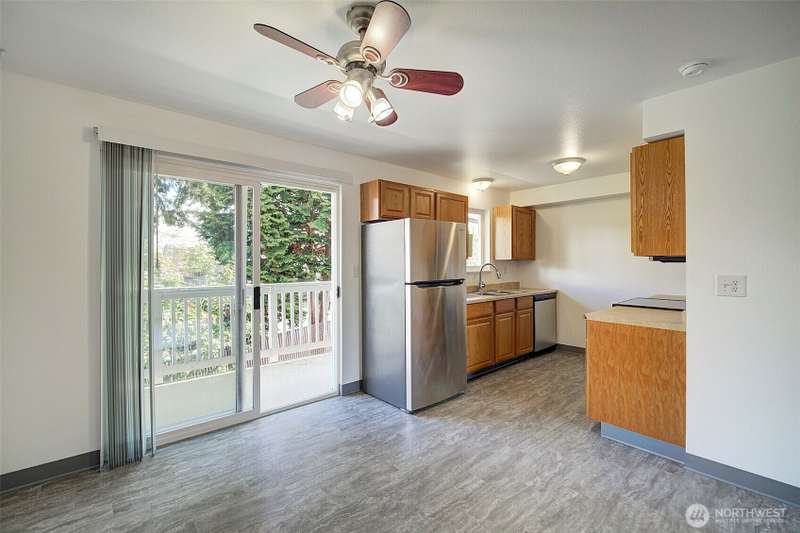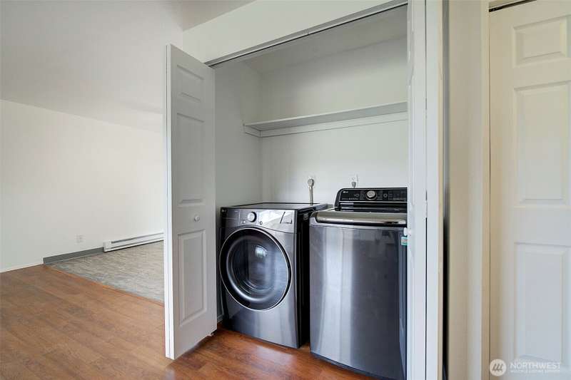 Nicely updated one-level top floor condo featuring all new vinyl flooring in kitchen, new/newer stainless steel appliances - refrigerator, 5-burner electric range/oven, dishwasher, microwave, washer/dryer. Newer vinyl double-pane slider and windows throughout. All new paint and baseboard heaters throughout. Community frontage along Beverly Lk - trails and cabana. Low monthly dues cover water/sewer/garbage/lawn service. New composition roof in 2023. Quick access to Boeing, Everett Mall, restaurants, Lowell/Forest/Harborview Parks.