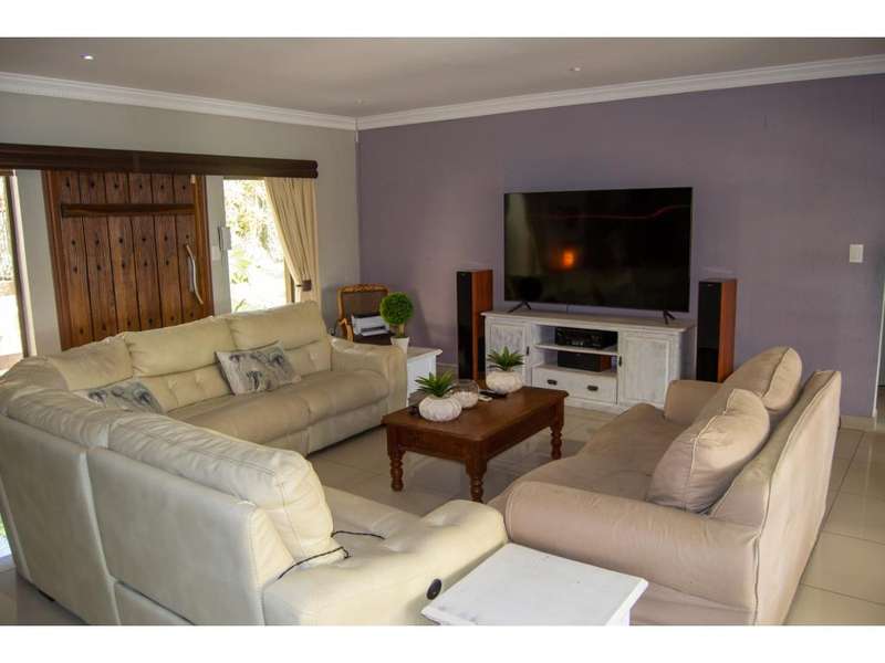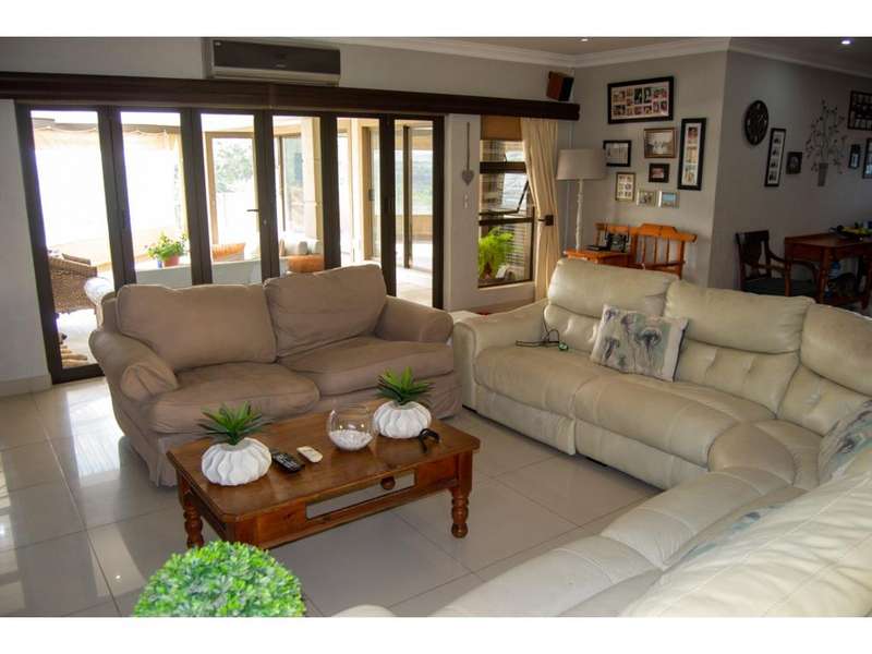 This beautiful home is situated in an upmarket, amazingly scenic and beautiful eco estate with limited stands in the Estate. Boasting luscious greenery, incredible bird life and buck sightings in its own private park. Plenty of place for kids to play and enjoy the outdoors. Along the park setting is the river mouth boarding the estate which can take you on a private boat to seaviews and an amazing beach. The estate has high end 24 hour manned security and safe as can be, with one of the best security companies on the South Coast. Visit Palm Kloof Estates Facebook page for an overview of the estate. The home itself is intriguing with its natural flow of openness, spaciousness, incredible views of distant greenery and although it is in an Estate it is exceptionally private. This home has no other home owners front or back yard looking into its living spaces because of the way it was designed and the land in front belonging to the same owner. The front land can be bought if desirable at an additional cost together with this property. This property boasts modern tasteful finishes, many features and highlights that makes this home as cosy and adorning for comfort, lifestyle and entertaining. Call me today to view this exclusive offer.