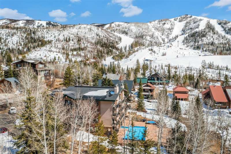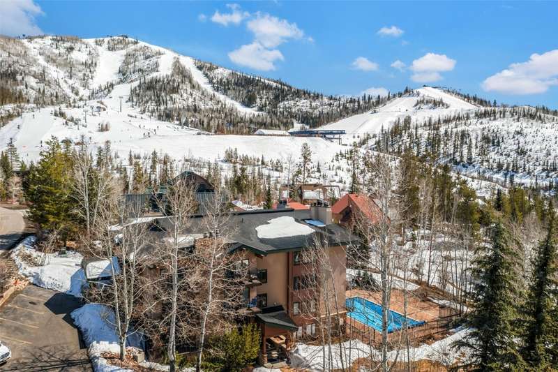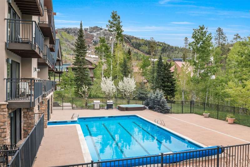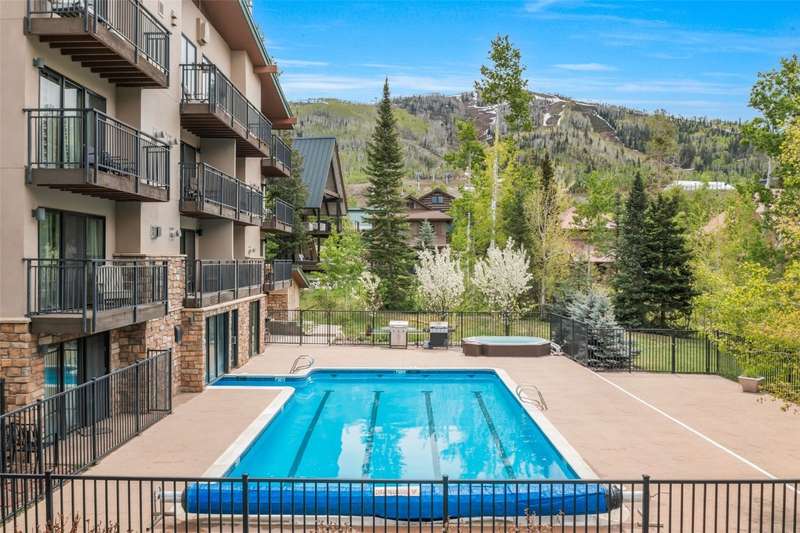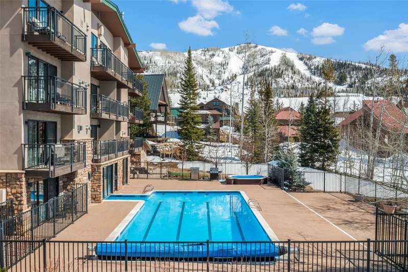Skip the long morning gondola lines and enjoy quick ski access from this charming top floor Scandinavian Lodge condo, just a three-minute walk to the mid-mountain Thunderhead chair lift. This thoughtfully designed 2-bedroom, 2-bathroom condo offers 1,004 square feet of open living space, featuring large windows that bring in natural light and highlight the updated kitchen. The unit comes fully furnished and turn key, and includes in-unit laundry for added ease. Cozy up next to the gas fireplace after a long day on the mountain, or relax outside on one of two west-facing balconies—perfect for enjoying Steamboat sunsets and shaded summer afternoons under mature trees. Located in Steamboat’s coveted green zone for short-term rentals, this condo is a strong income producer with excellent rental history. The complex itself is quiet and intimate, with only 20 units, and boasts one of the best pools in town—large, heated, and available for year-round enjoyment. The surrounding patio includes a grilling area and inviting hot tub ideal for après-ski soaking and stargazing. There’s also a grassy play area perfect for dogs or kids, and a ski locker to store your gear. In the summer months, step out your front door and onto hiking and biking trails at the resort or play a round of disc golf at the ski area course— all just a short 0.2-mile walk away. This private mountain retreat offers tranquility away from the hustle and bustle of the base area, while still keeping you close to all the action. Whether you're looking for a second home or a high-performing investment, this mountain condo delivers the lifestyle and returns you've been waiting for.
