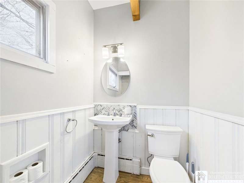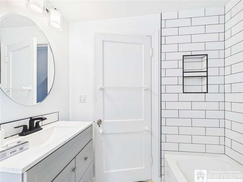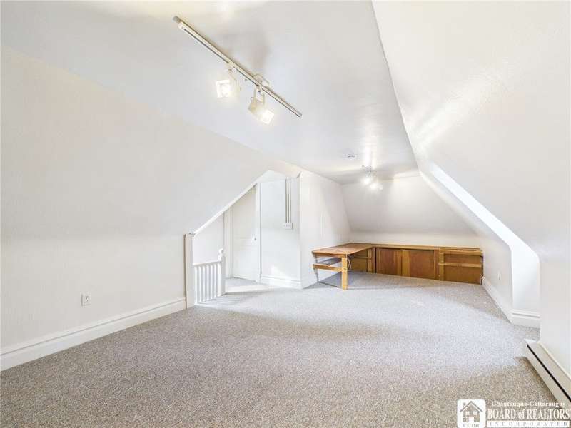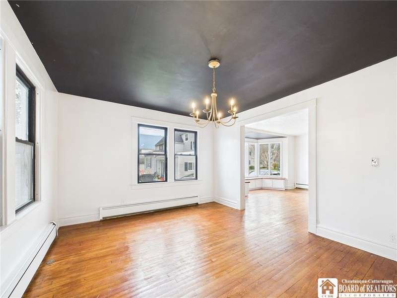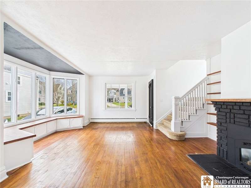 This charming Old-Style home sits on a quiet cul-de-sac in Olean's desirable Seneca Heights neighborhood. Step inside to a welcoming foyer that opens into a spacious living room featuring hardwood floors, a large bay window, a gas fireplace, and a built-in bookcase. The formal dining room leads to an expansive family room accented by exposed wood beams, modern white wood walls, and pegged hardwood floors. Adjacent to the family room are a convenient first-floor laundry room and half bath.The kitchen offers ceramic flooring, a walk-in pantry, and stainless steel appliances. Upstairs, you'll find a beautifully renovated full bathroom and three well-sized bedrooms. The primary bedroom includes a walk-in closet, an additional closet, and a dedicated dressing area.The finished attic provides excellent versatility for a home office, playroom, or potential fourth bedroom. Outside, the fully fenced yard features a playset and is situated just around the corner from Magnano Park. As a bonus, all stainless steel appliances are included.