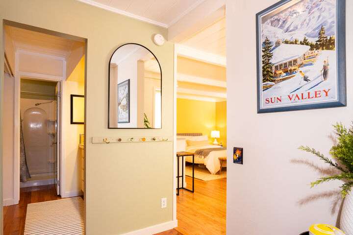 This ground-floor studio Atelier Condo offers breathtaking views of Baldy, beautifully framed across the Sun Valley pond and expansive open space. Built in 1966, the Atelier project spans over 7.5 acres of lush common areas along Trail Creek, showcasing the remarkable natural beauty of Sun Valley, Idaho.