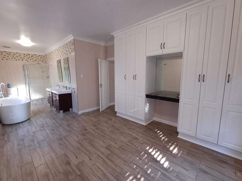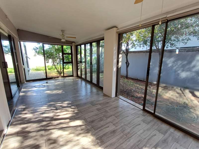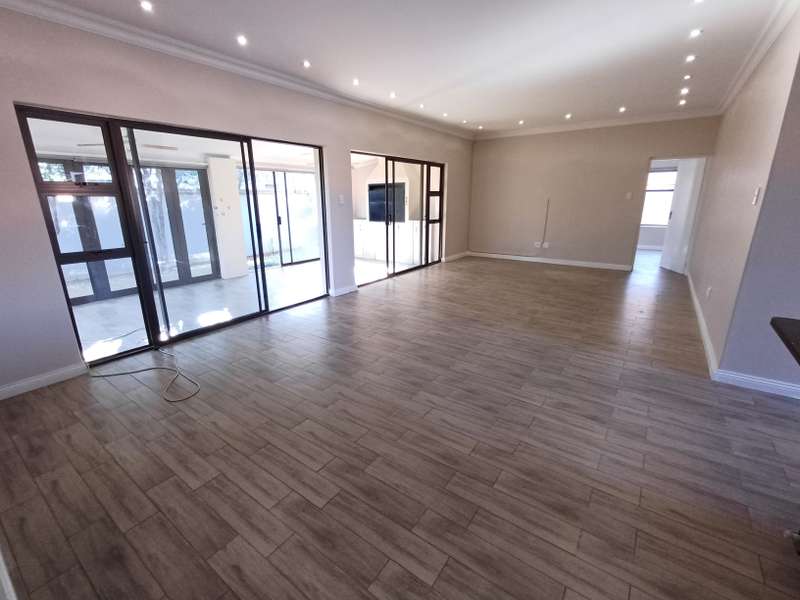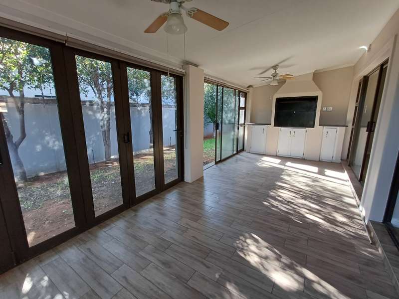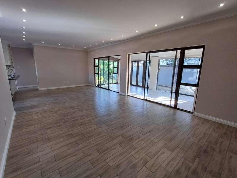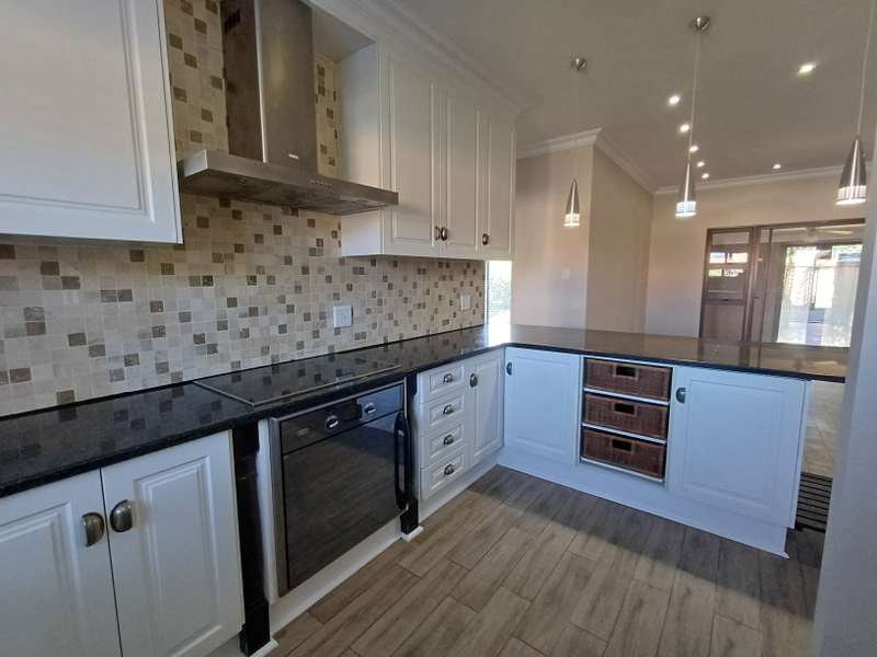 This exceptional property offers the perfect blend of comfort, modern convenience, and timeless charm, making it an ideal home for families. Located in a highly desirable area, it boasts well-designed living spaces that promote both relaxation and effortless entertaining. The heart of the home features a seamlessly integrated open-plan layout, combining the kitchen, lounge, and entertainment areas. The lounge is bright and inviting, with sliding doors that open onto a built-in braai area, perfect for year-round indoor entertainment. Stacking doors further extend the space, leading out to a shaded garden, creating a harmonious flow between indoor and outdoor living. The kitchen is both stylish and functional, equipped with ample built-in cupboards, a stove and oven, and generous counter space to accommodate all your cooking needs. Designed for convenience, this space ensures effortless meal preparation while maintaining a contemporary aesthetic. -Three spacious bedrooms, each offering comfort and natural light. -Main bedroom includes an en-suite bathroom and air conditioning for added luxury. -A second bathroom, well-appointed with modern finishes, serves the remaining bedrooms. -Double garage with a motorized door and fully tiled for secure parking. -Carport accommodating two vehicles, ensuring ample parking space. -Electric fencing for enhanced security. -Automated gate for added convenience and peace of mind. This charming home provides a comfortable and functional living environment, perfect for modern family life. Don’t miss out on this fantastic opportunity—contact me today to arrange a viewing!