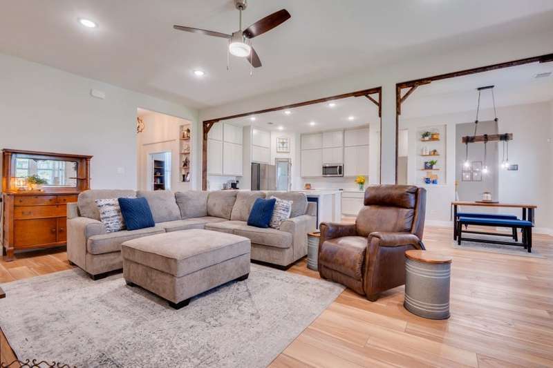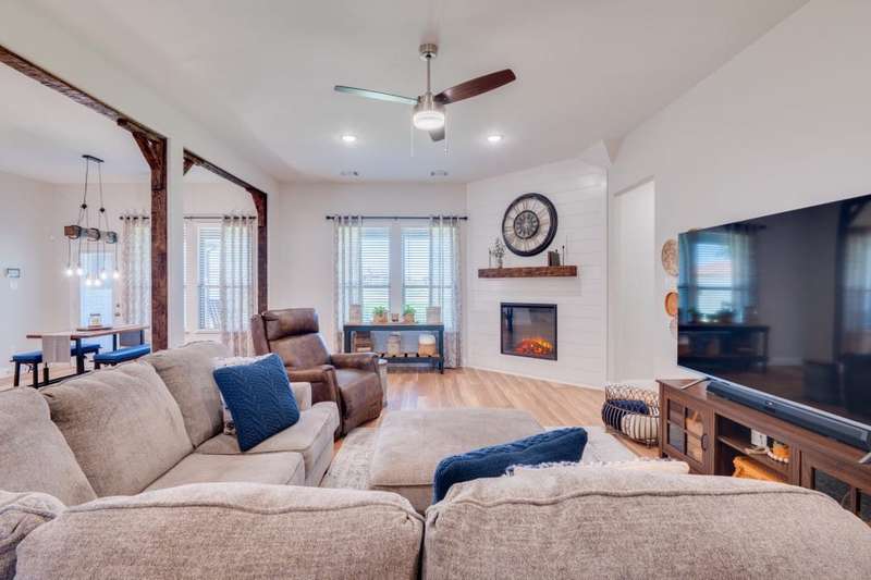 SELLER'S ARE OFFERING 1-0 BUY DOWN, 1 POINT LOWER THAN MARKET INTEREST RATE FOR THE FIRST YEAR! Back on the market at no fault of the sellers! Transitional modern farmhouse offers the perfect mix of style, space, and serenity. Sitting on 1.1 beautifully landscaped acres with no city taxes, this energy-efficient home is loaded with upgrades and move-in ready. Step inside to an open floor plan with a large kitchen island, quartz countertops, stainless steel appliances, and a spacious living room featuring a sleek electric fireplace. The vaulted-ceiling primary suite includes a spa-inspired bath with dual vanities, a soaking tub, large closet, and a dual-head walk-in shower. Features you'll love: Energy-efficient foam insulation (avg. electric bill $150$200), Smart home with security + blazing-fast AT&T Fiber internet, 3-car garage + 30x35 barn with attached 25x12 workshop. Covered back patio, gorgeous landscaping, fresh paint, carpet, new roof, updated lighting, trim work, and more! Enjoy peaceful country living with all the city conveniences, just 810 miles to shopping, restaurants, and the newly expanded H-E-B. 36 miles to Downtown Dallas, 40 miles to Downtown Fort Worth. Close to emergency services. Super clean & ready for you!