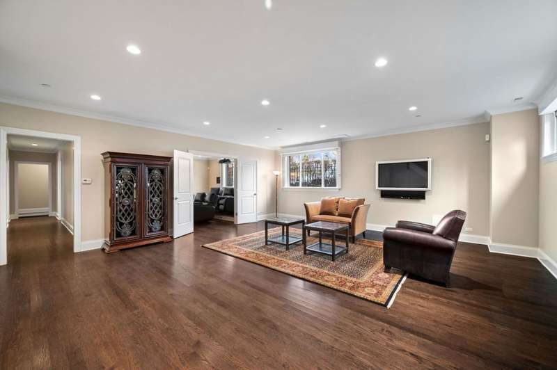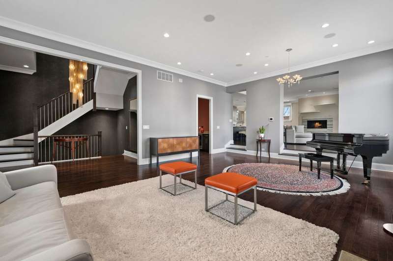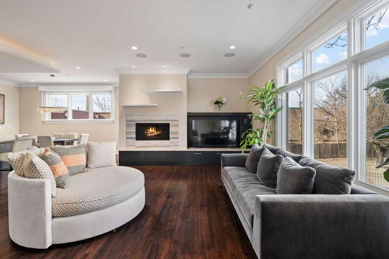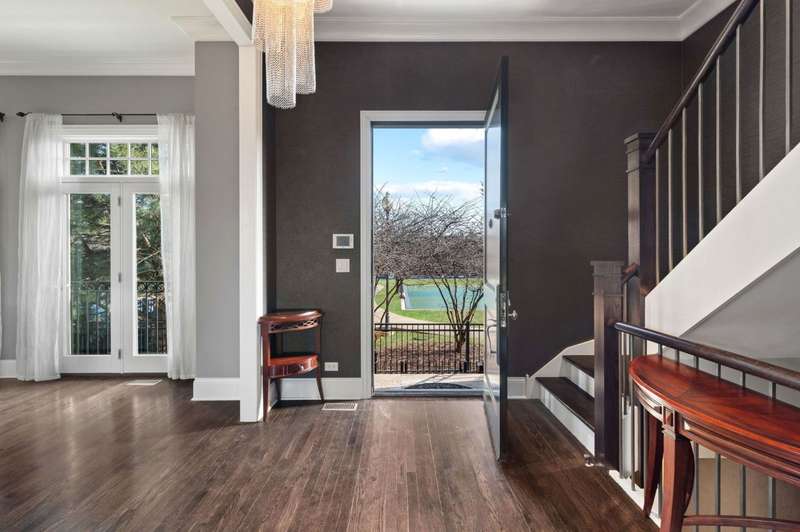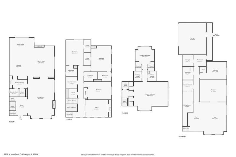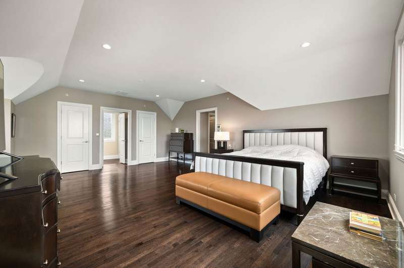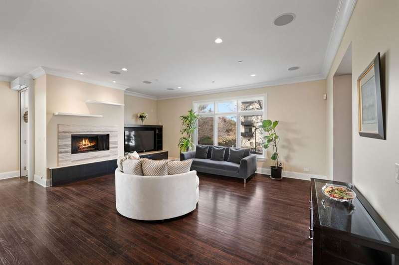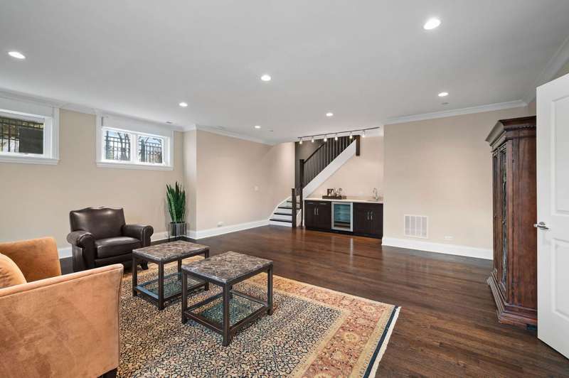 Welcome to this stunning 6-bedroom, 5.5-bathroom Environs built single-family home in the exclusive Hartland Park community-a secluded enclave in Lincoln Park featuring a private gated 1/2-acre park. This corner home was the former model home flooded with natural light from three exposures and offers 6,300 sq. ft. of refined living space on an extra-wide lot. Step inside to find hardwood floors throughout all levels, huge formal living room, a gracious family room and dining area off of the chef's dream kitchen with a massive island, Viking 6-burner range with double oven and grill, butlers pantry with dry bar, wine fridge, pantry, closet and powder room. The kitchen/dining/family room area leads to a spacious walk-out deck and small yard space. The second floor hosts four generously sized bedrooms with 2 of them ensuite, one of two fully outfitted laundry rooms with sink, storage, and folding bar, plus organized closets throughout. The entire third floor is dedicated to the luxurious private primary suite, boasting a spa-like bath with dual vanities, tv's, an air-jet soaking tub, and a steam shower PLUS tons of closet space. The expansive lower level is an entertainer's dream, featuring a massive family room, wet bar with a wine cooler, bedroom, a full bath and a theater room with projector, screen and 6 comfy seats. Additional highlights include professionally organized closets and pantries, wood burning fireplace, hot water radiant heated floors, a home security system, zoned HVAC with newer furnaces, A/C condensers, and water heaters, and a second full laundry room. Enjoy the convenience of an attached 2.5 -car garage. Hartland Park offers private park with basketball court, playground, and green space plus a private dog park. This exceptional home offers unparalleled luxury, space, and privacy in one of Chicago's premier neighborhoods, a rare opportunity in Hartland Park!
